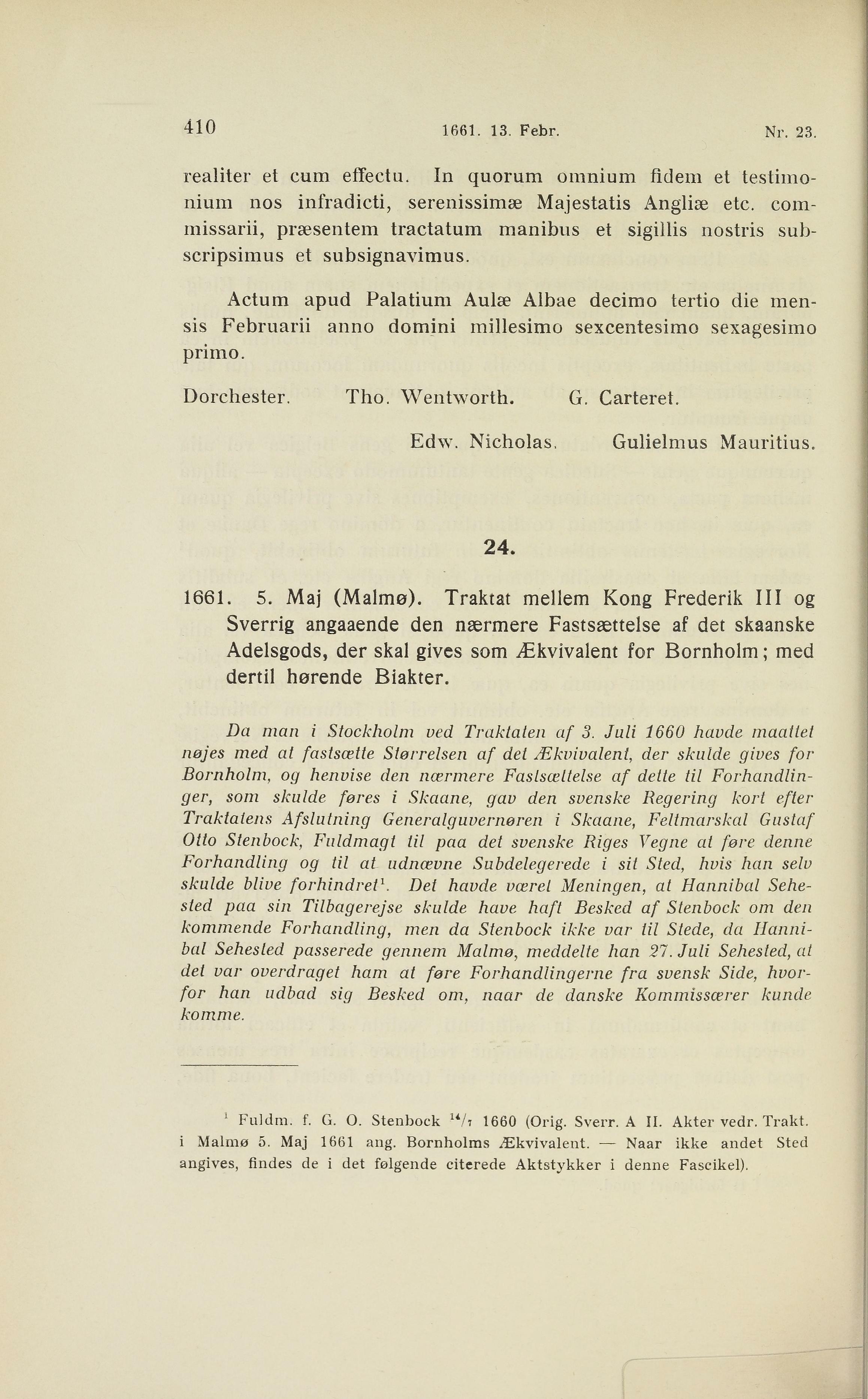 1661. 5. Maj (Malmø). Traktat mellem Kong Frederik III og