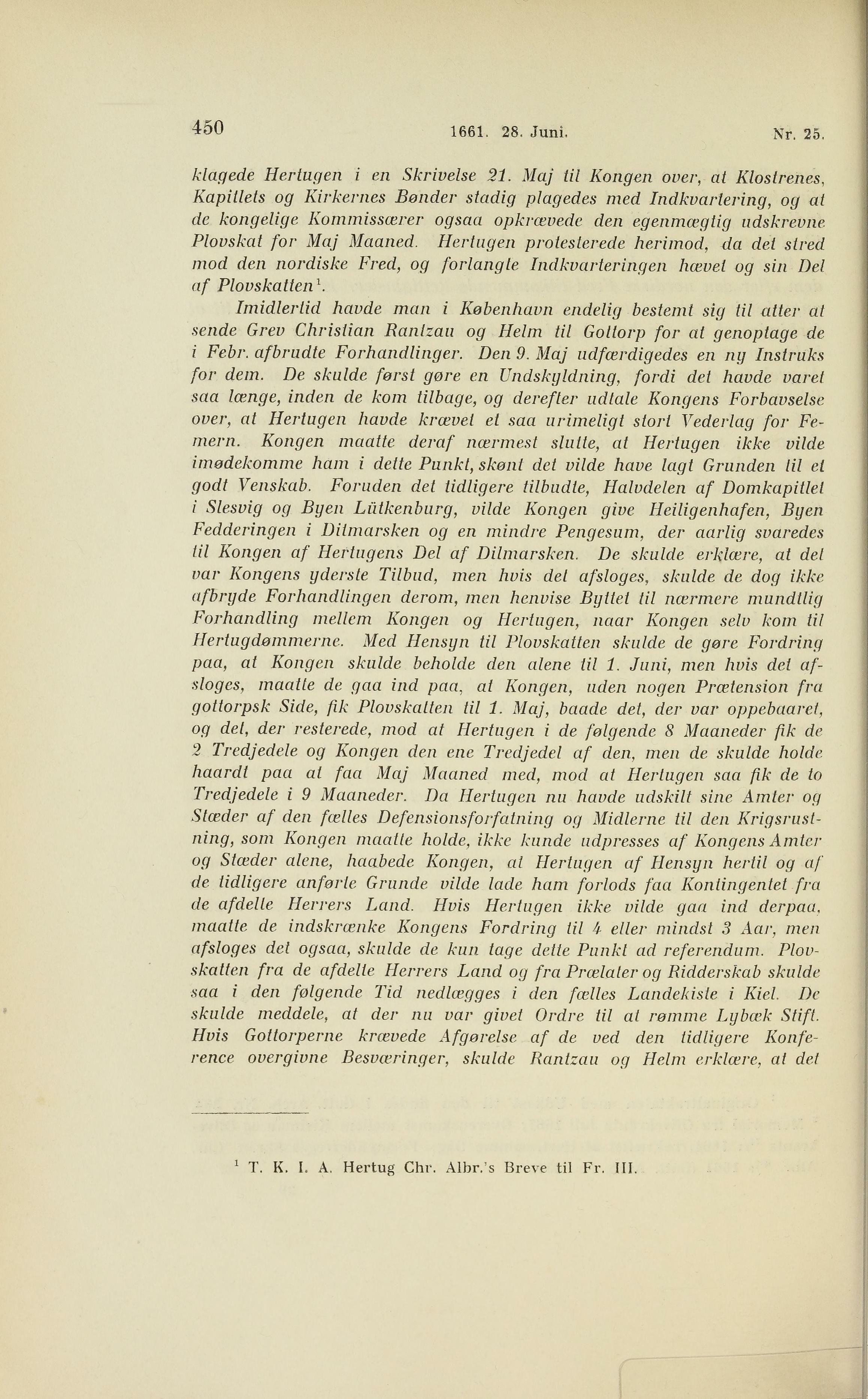1 T. K, I. A. Hertug Chr. Albr/s Breve til Fr, III.