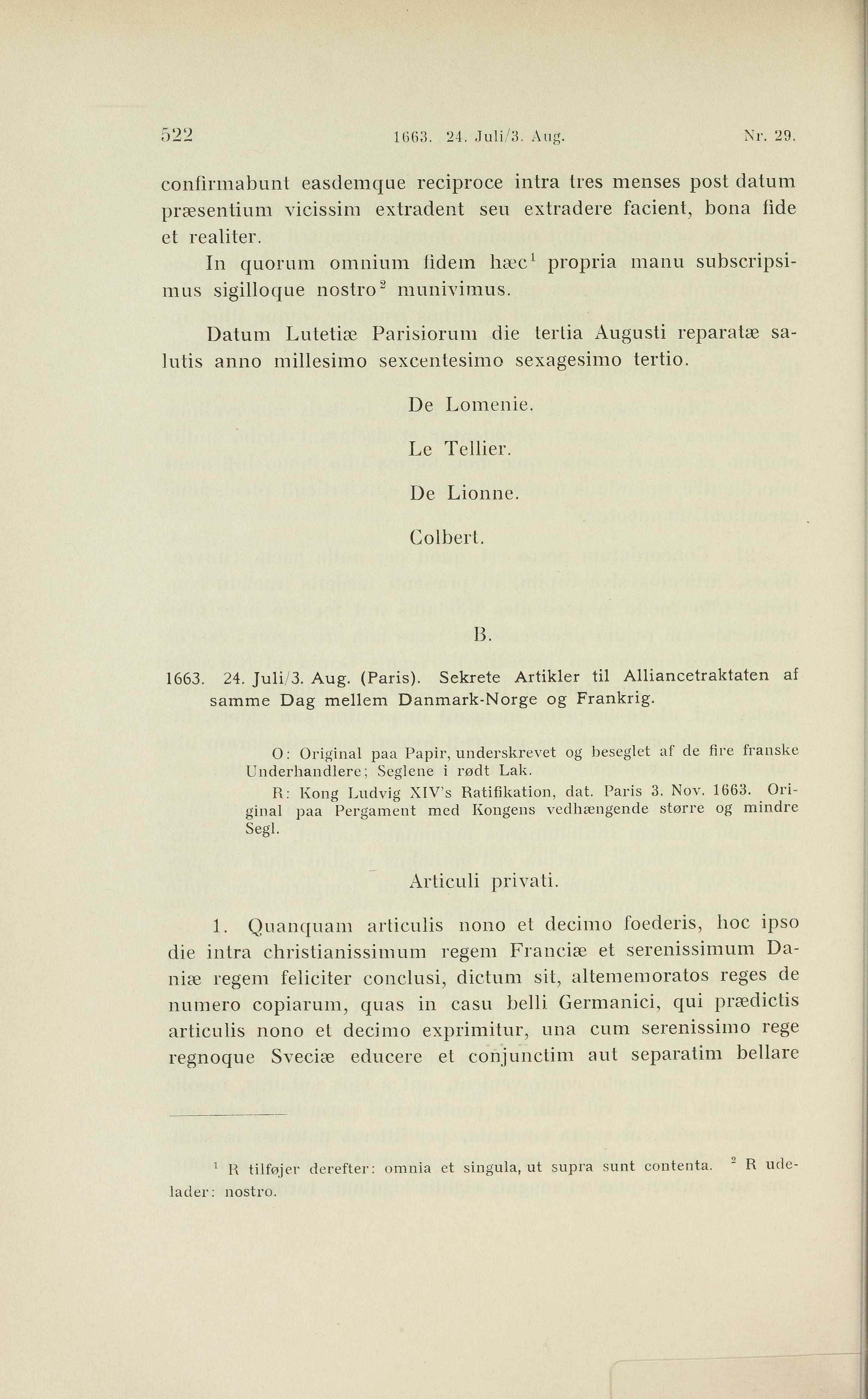 1663. 24, Juli/3. Aug. (Paris). Sekrete Artikler til Alliancetraktaten af