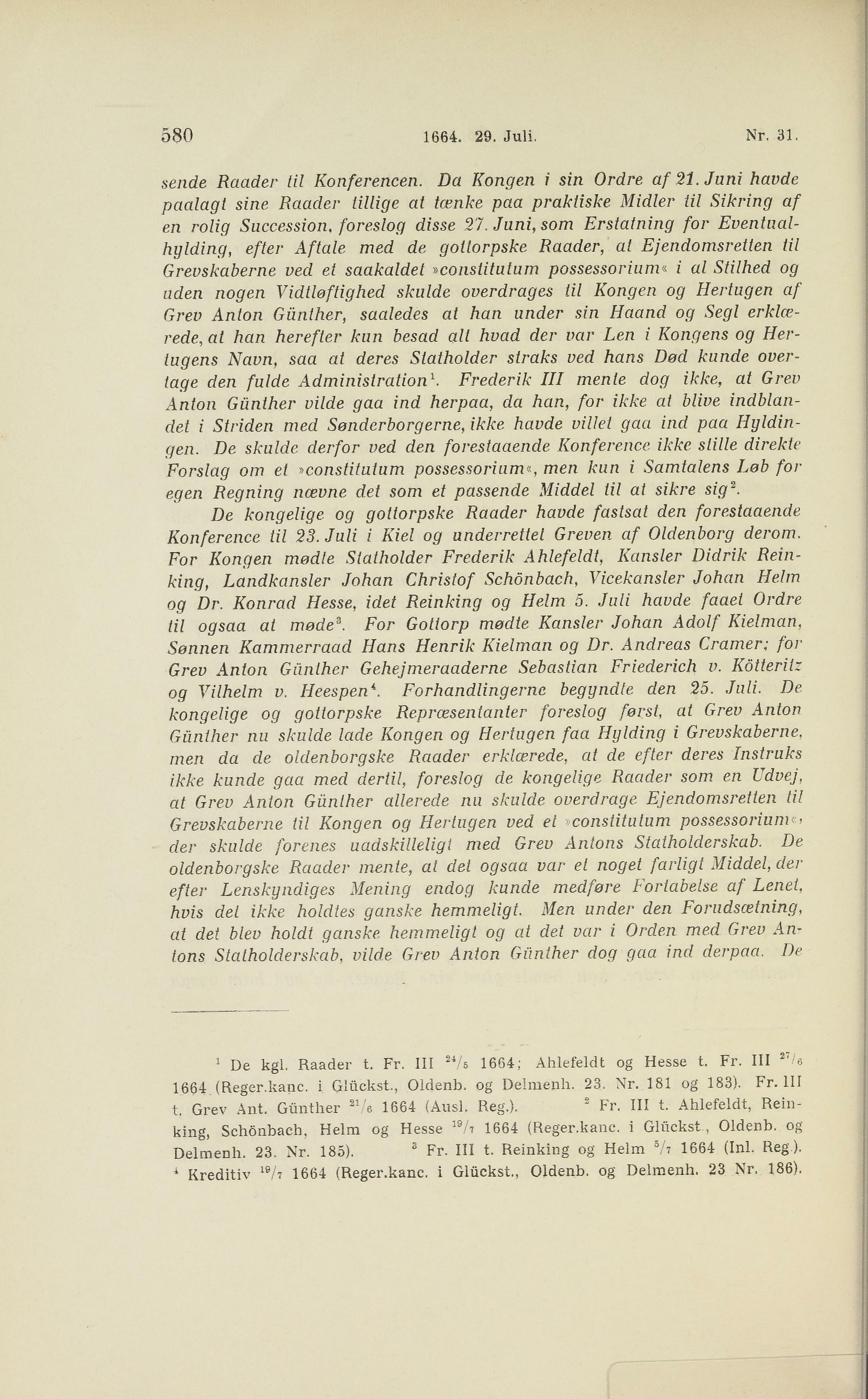 580 1664. 29. Juli, Nr, 31.