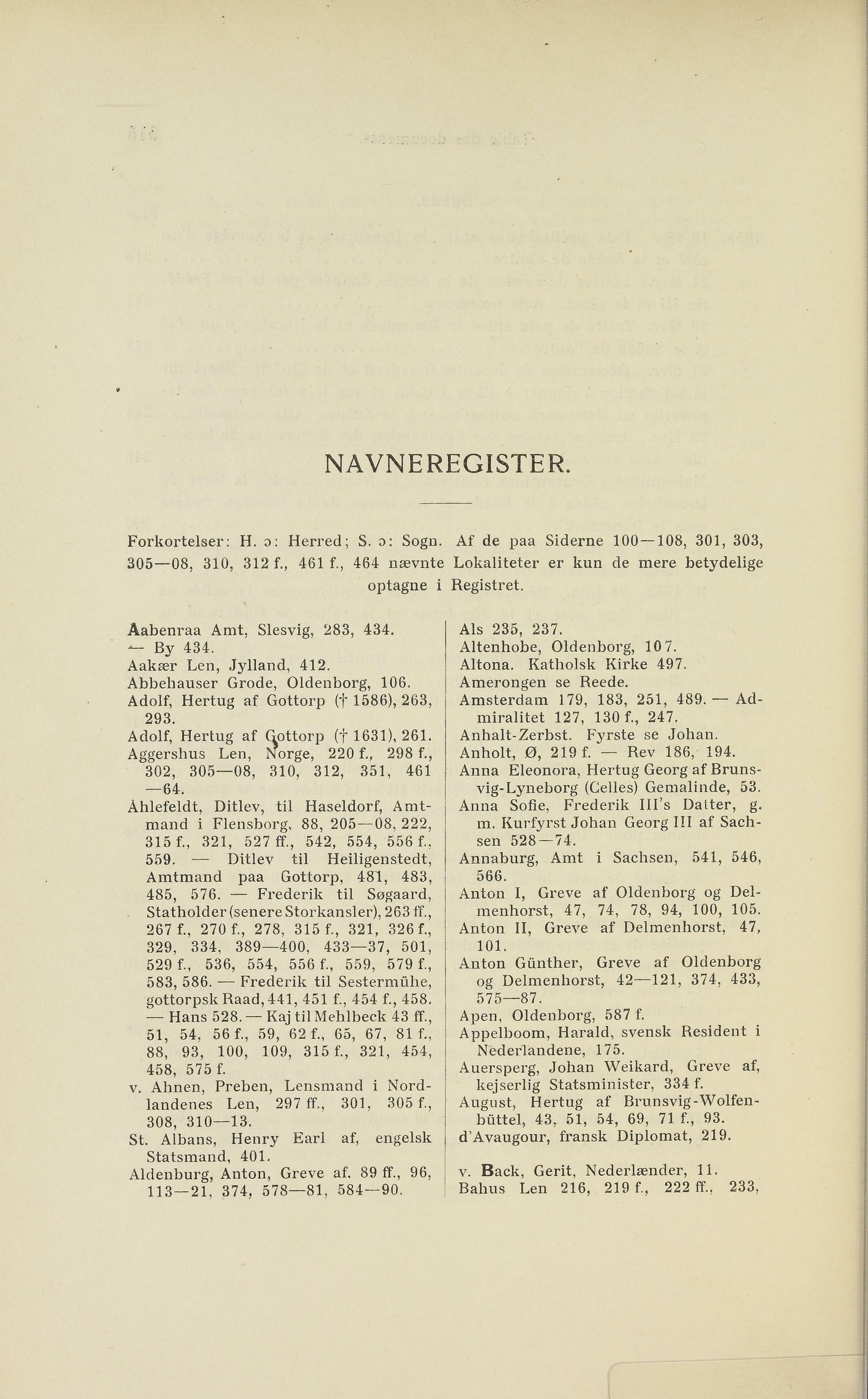 Forkortelser; H. o: Herred; S. o: Sogn. Af de paa Siderne 100 —108, 301, 303,