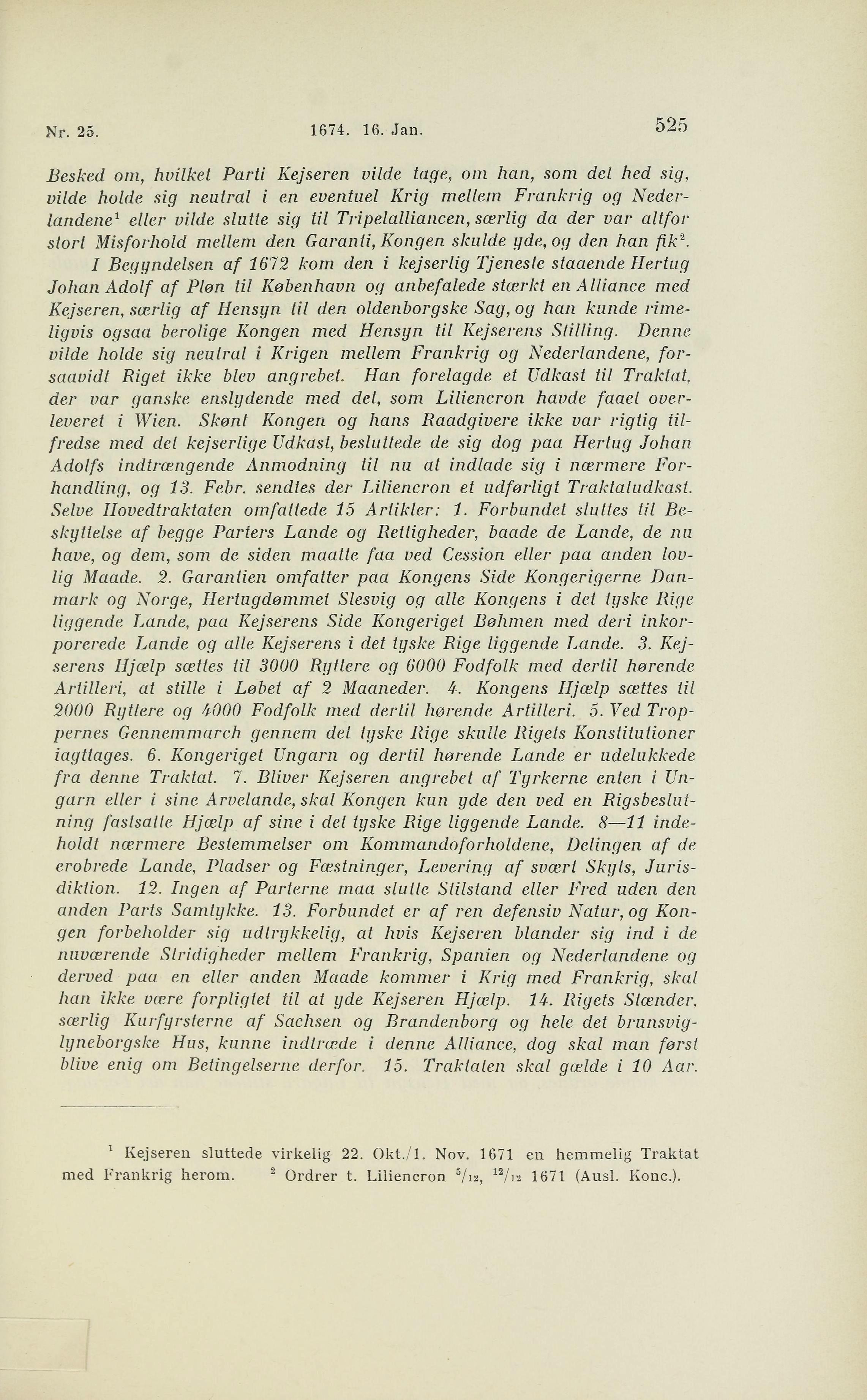 1 Kejseren sluttede virkelig 22. Okt./l. Nov. 1671 en hemmelig Traktat