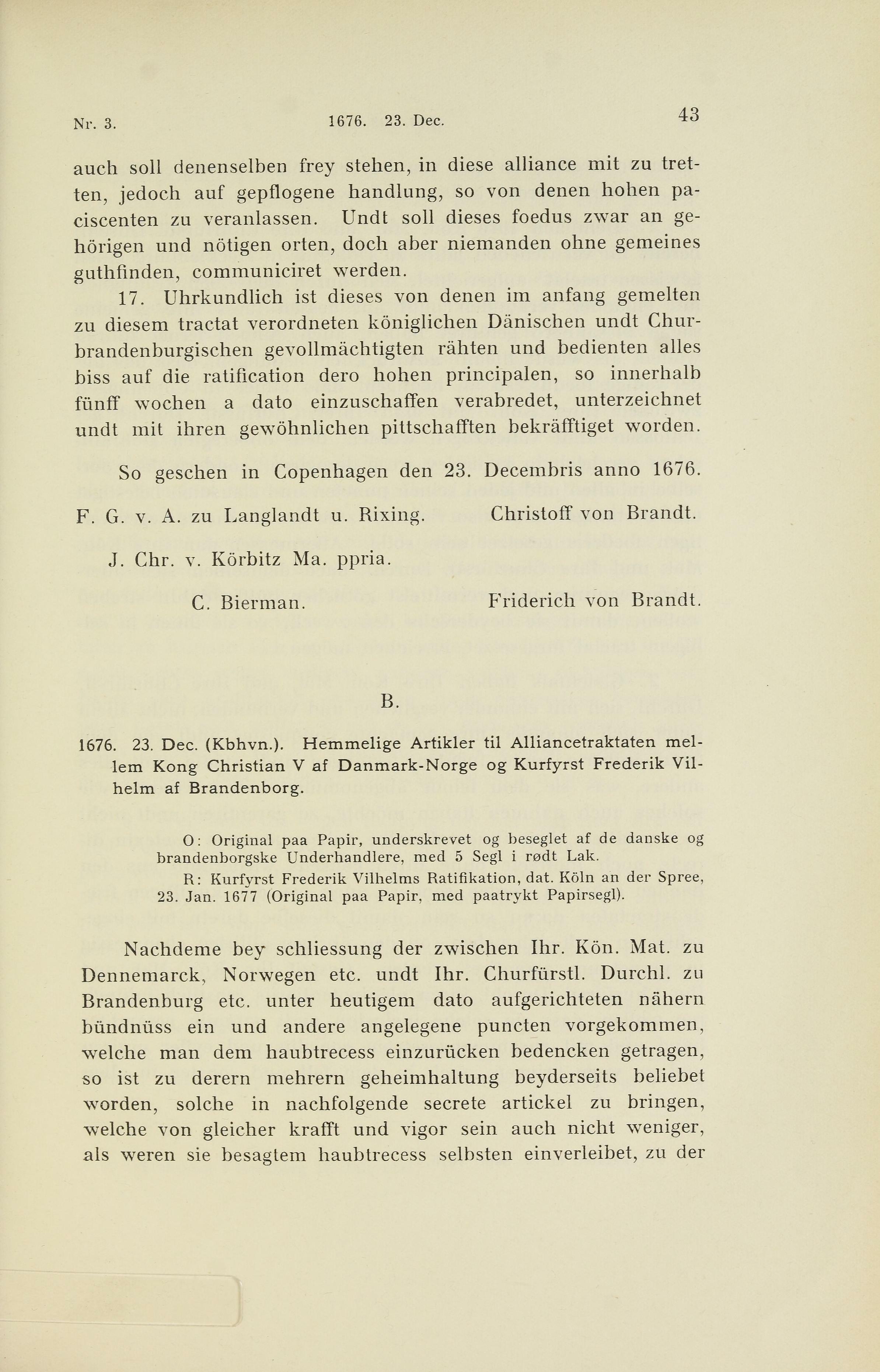 So geschen in Copenhagen den 23. Decembris anno 1676.