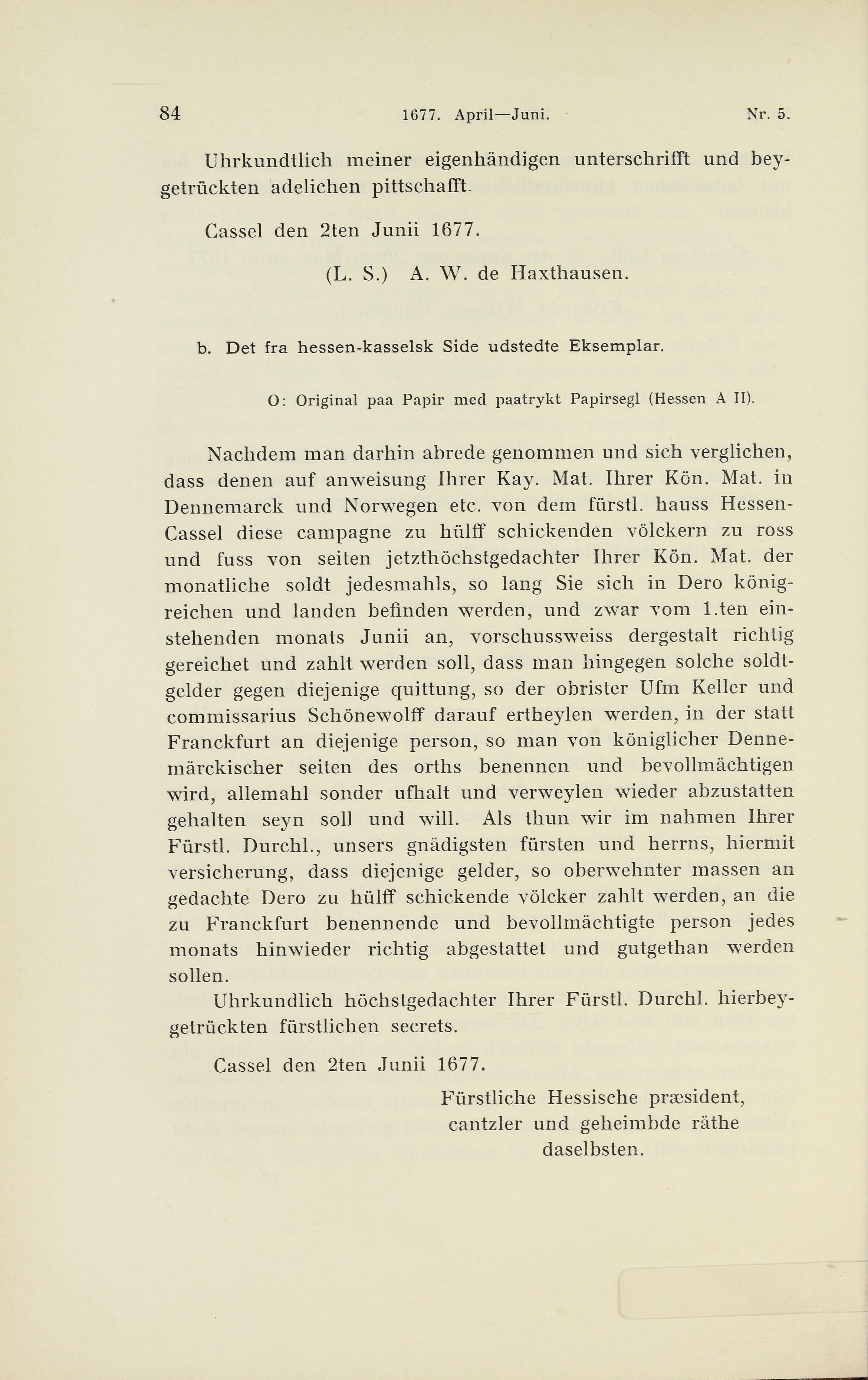 b. Det fra hessen-kasselsk Side udstedte Eksemplar.