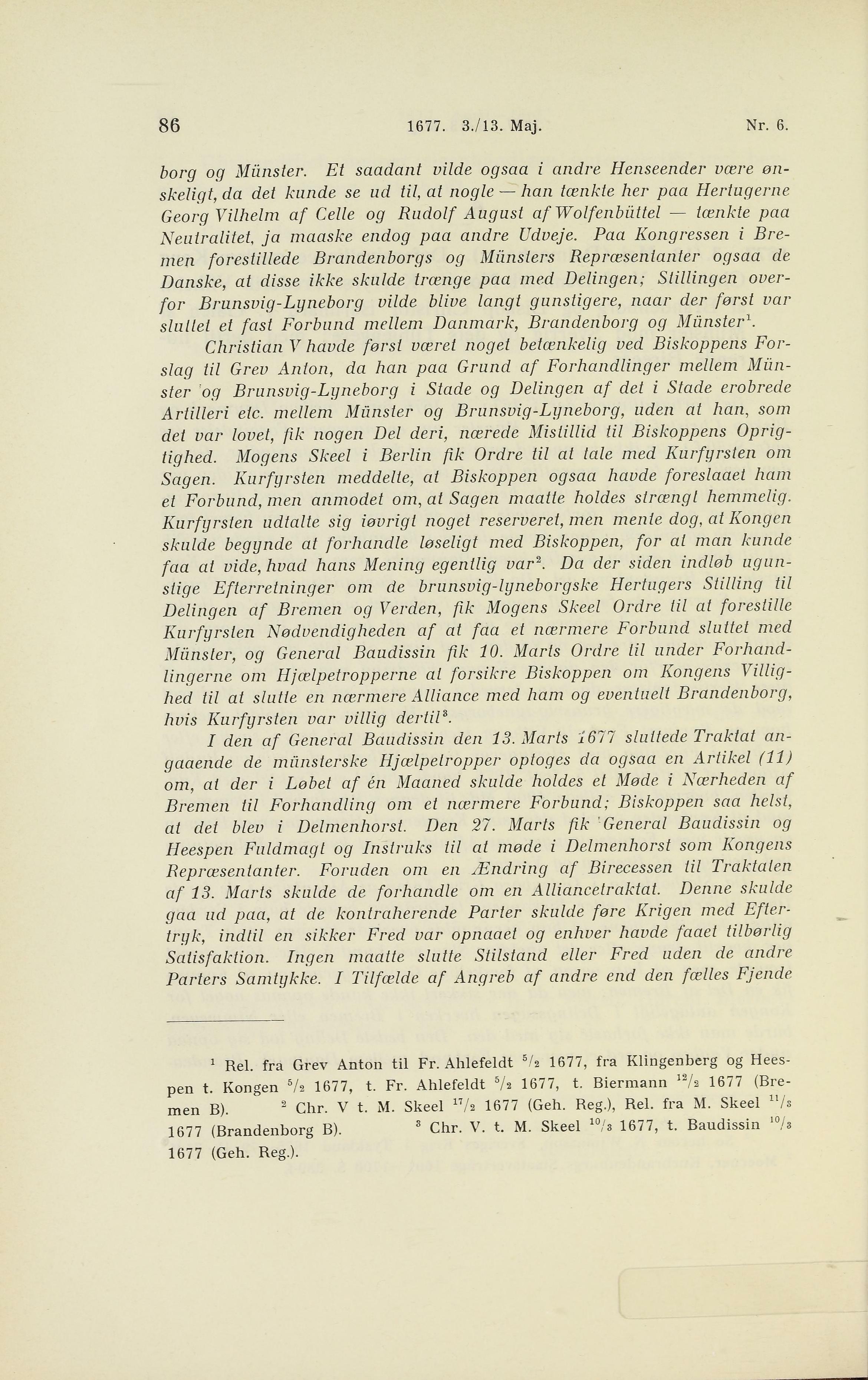 1677 (Brandenborg B). 8 Chr. V. t. M. Skeel 10/. 1677, t. Baudissin 10h