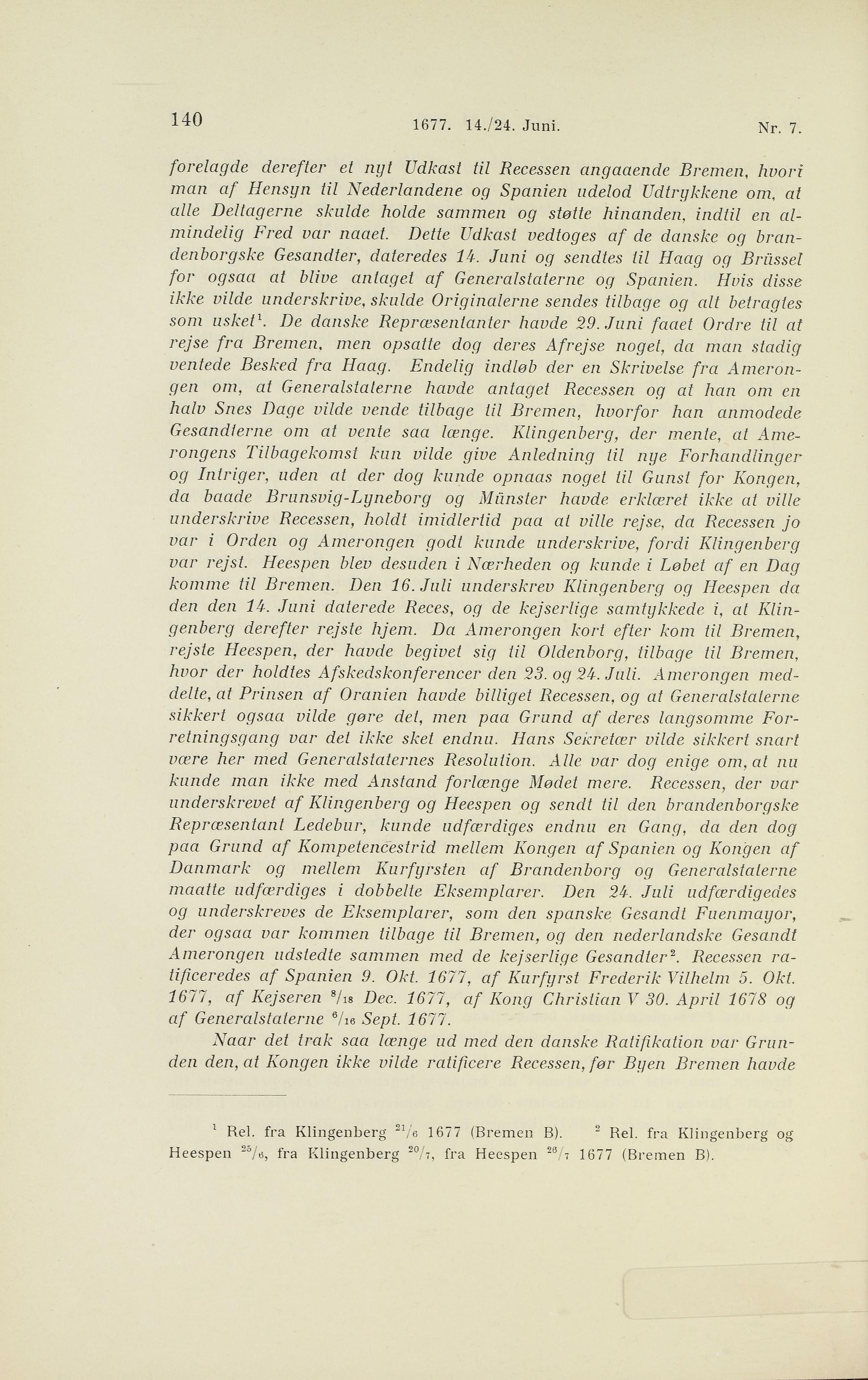 tificeredes af Spanien 9. Oki. 1677, af Kurfyrst Frederik Vilhelm 5. Okt.