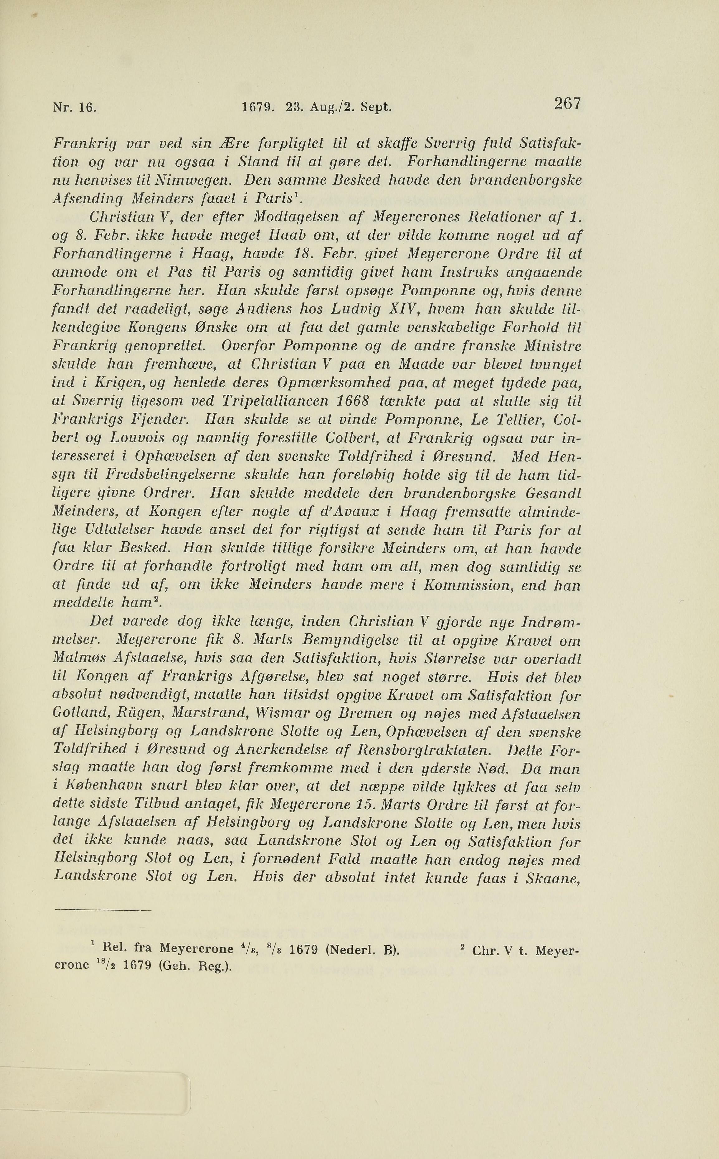 1 Rel. fra Meyercrone */«, 8/a 1679 (Nederl. B).
