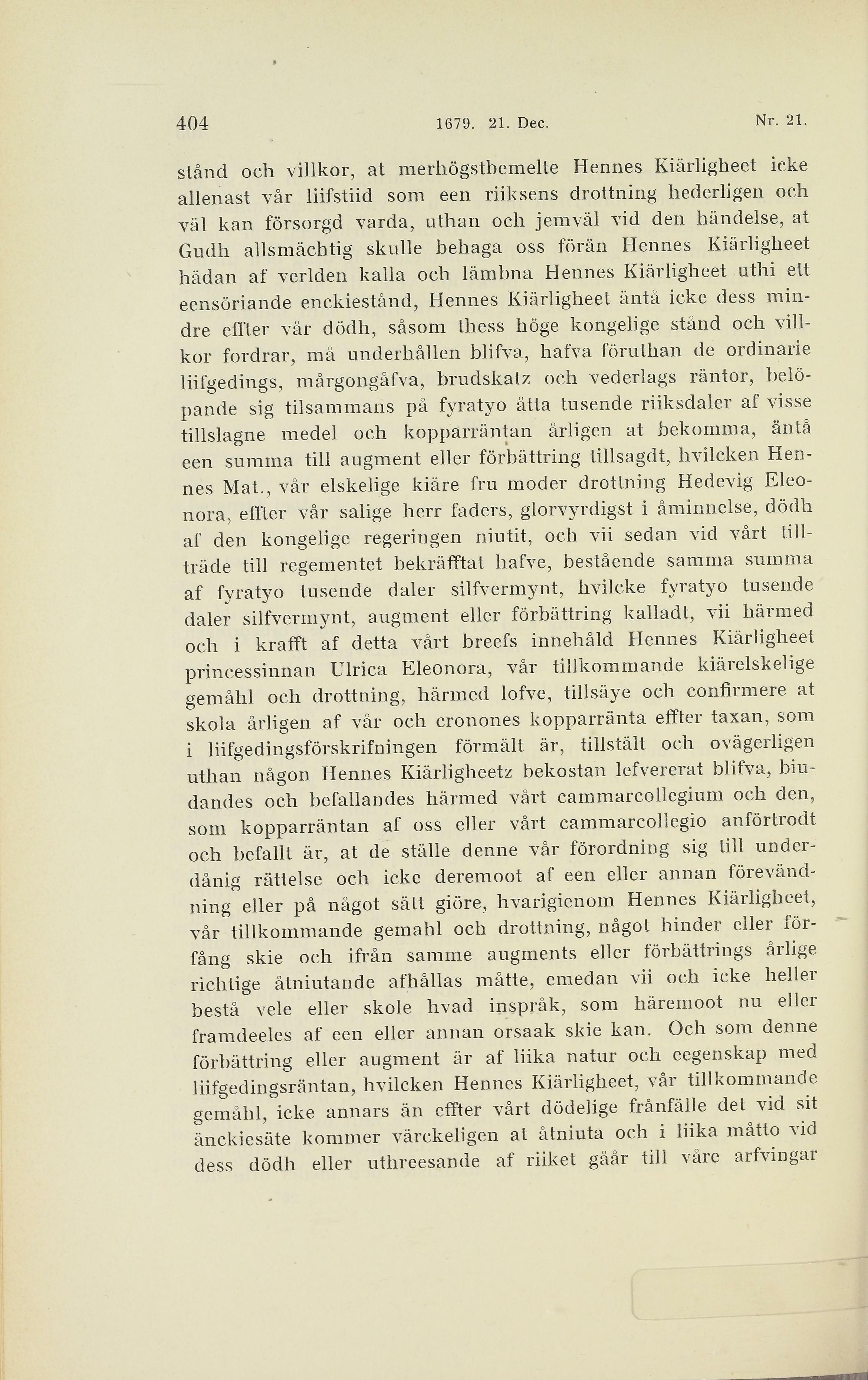 stand och villkor, at merhogstbemelte Hennes Kiårligheet icke