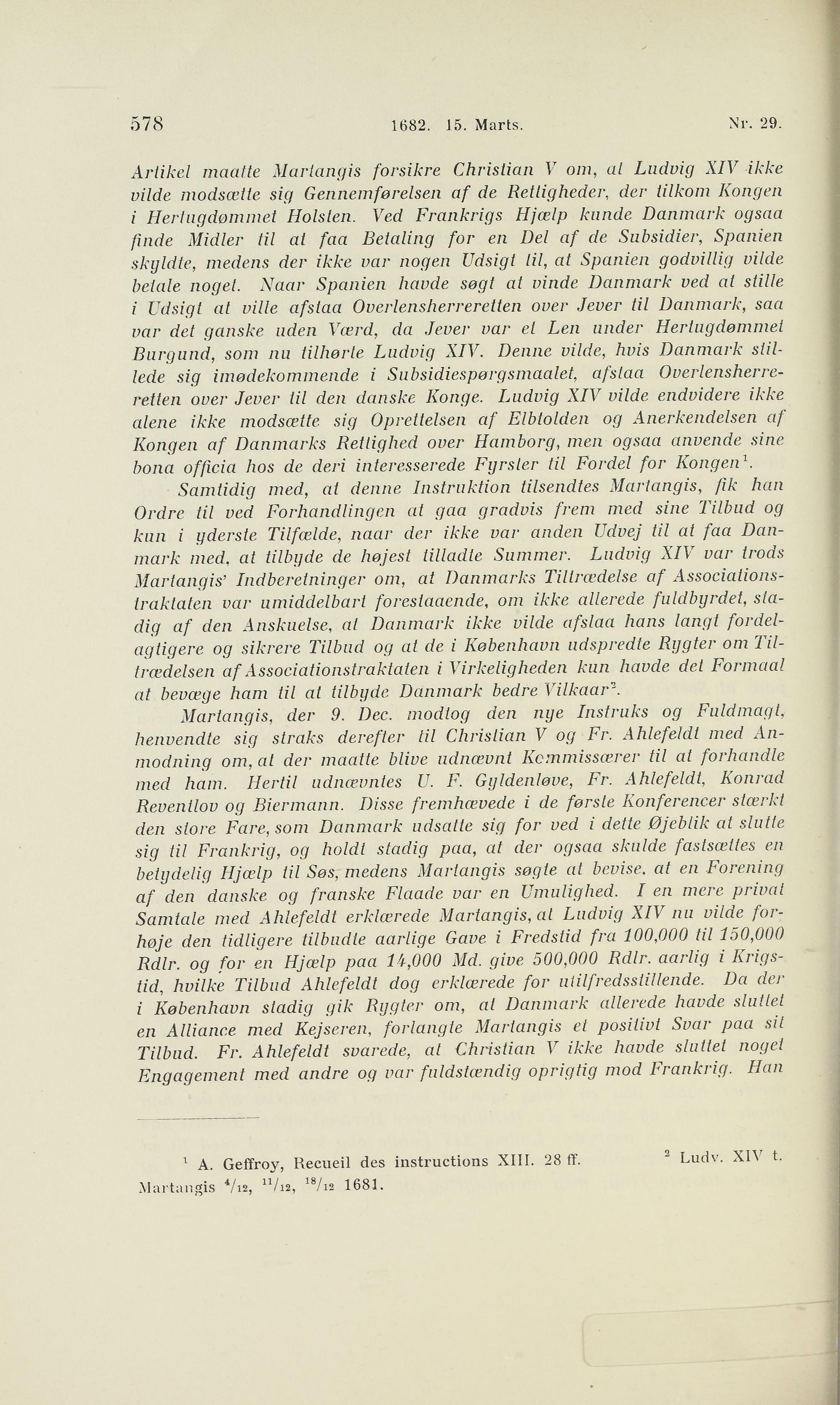 Arlikel maatte Marlangis forsikre Christian V om, al Ludvig XIV ikke