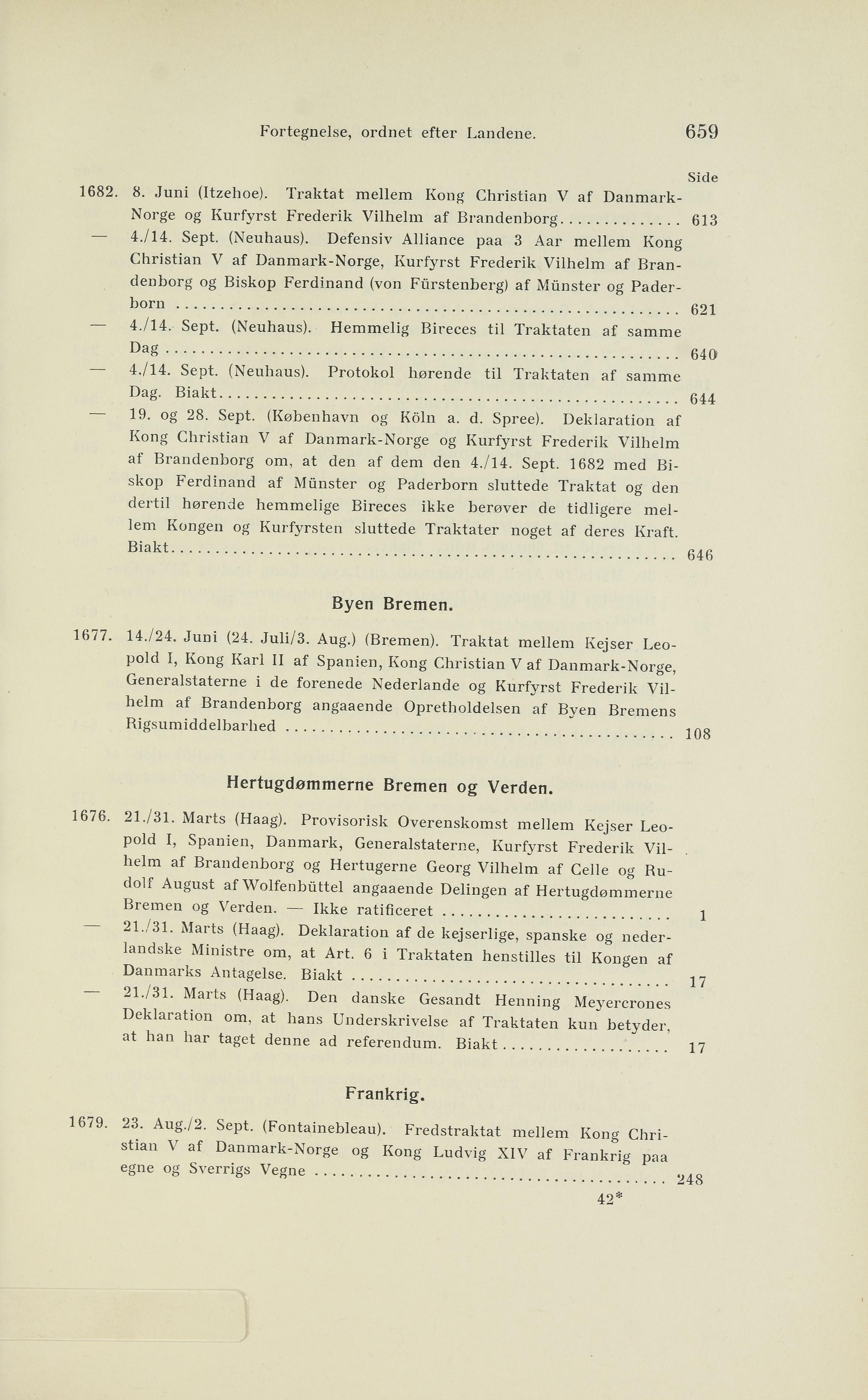 Fortegnelse, ordnet efter Landene. 659