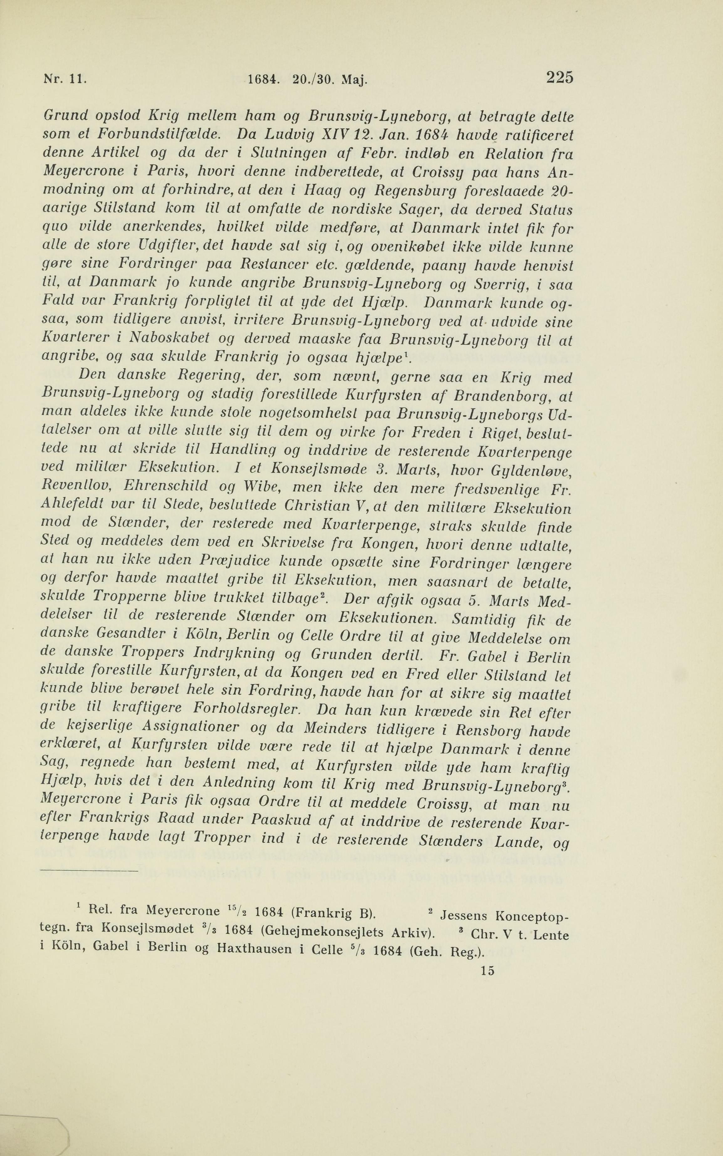 1 Rei. fra Meyercrone 15/2 1684 (Frankrig B). 2 Jessens Konceptop