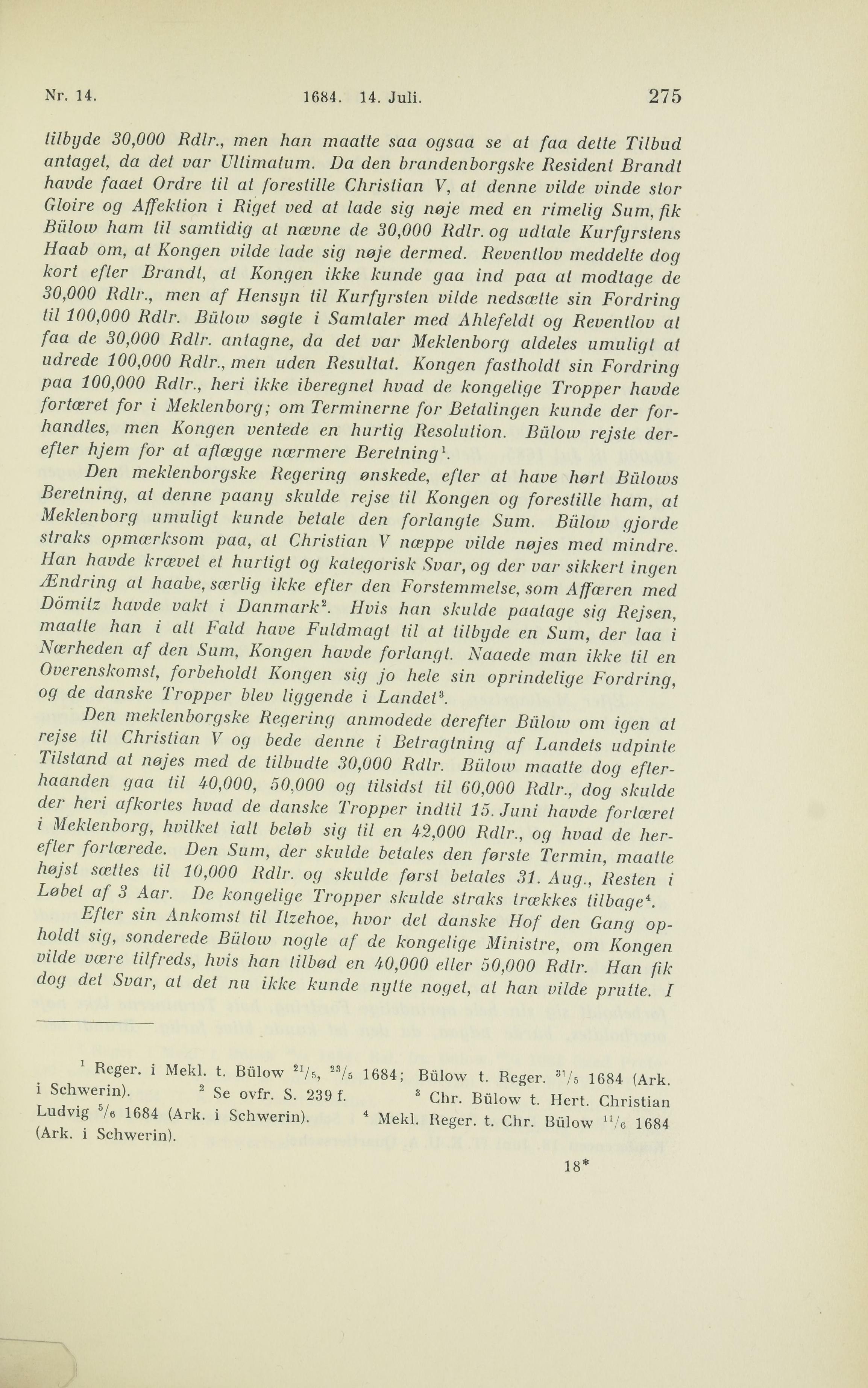 1 Reger. i Mekl. t. Biilow 21/s, 23/6 1684; Biilow t. Beger. 8Vs 1684 (Ark