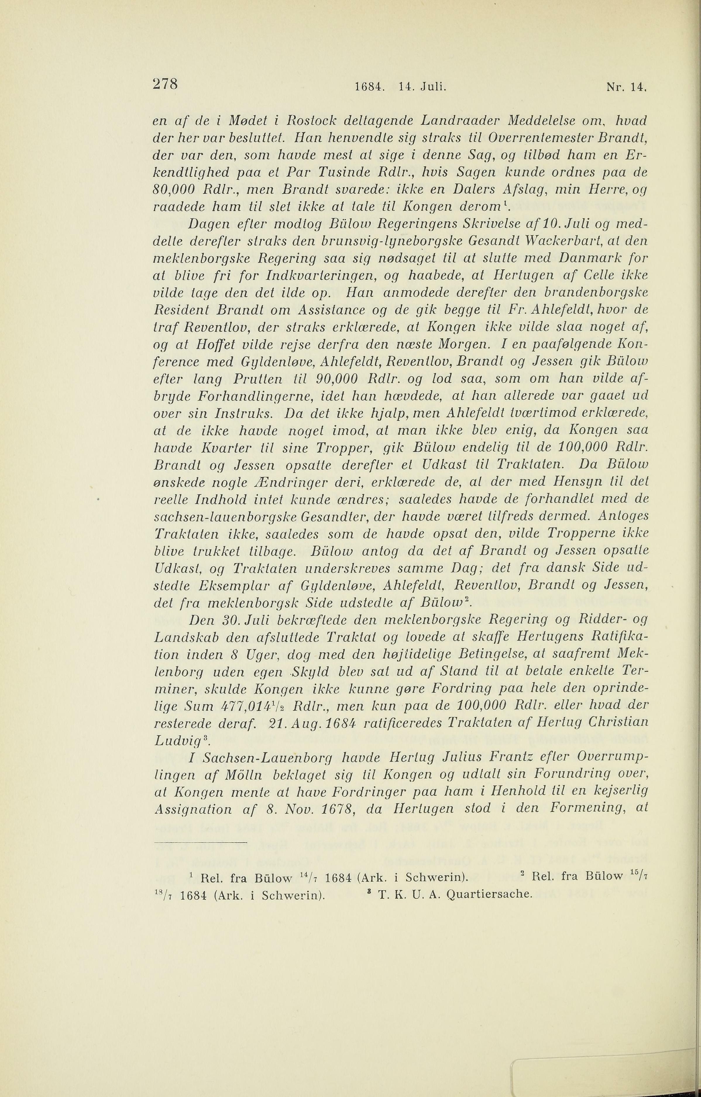 1 Rei. fra Bulow 14A 1684 (Ark. i Schwerin)