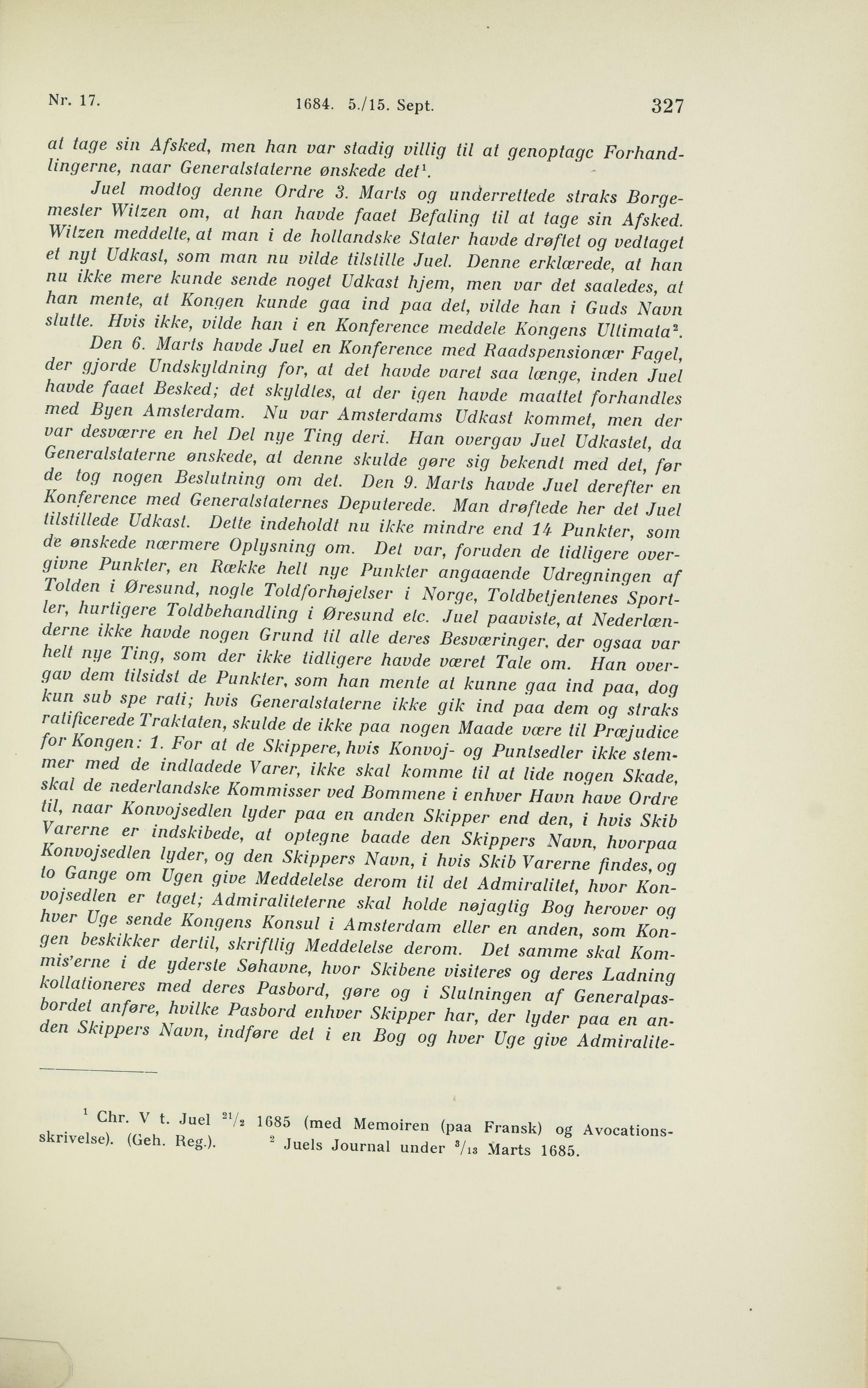 ( ’ Reg-)- Juels Journal under Vis Marts 1685.