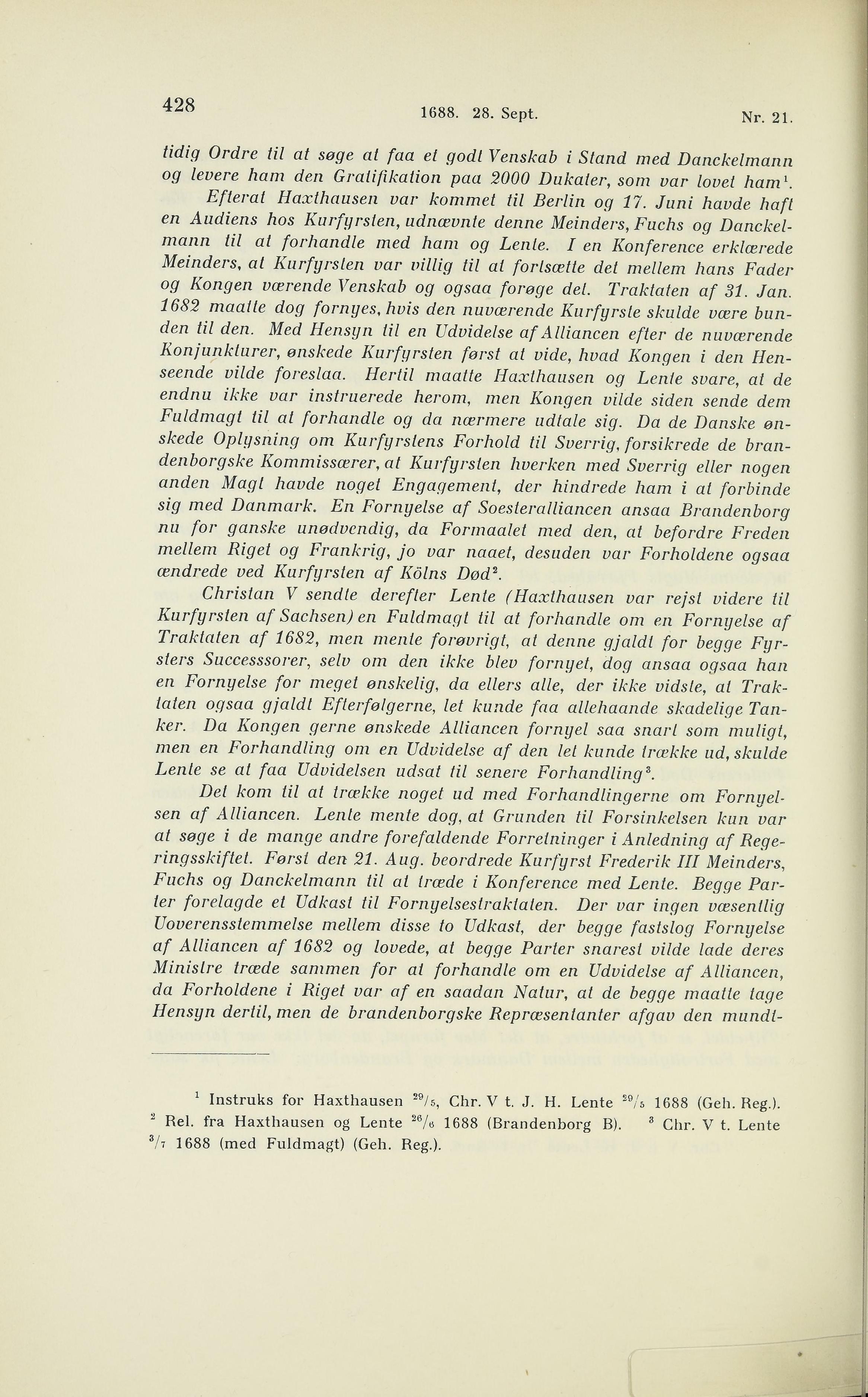 3 Rei. fra Haxthausen og Lente 26/e 1688 (Brandenborg B). 3 Chr. Vt. Lente