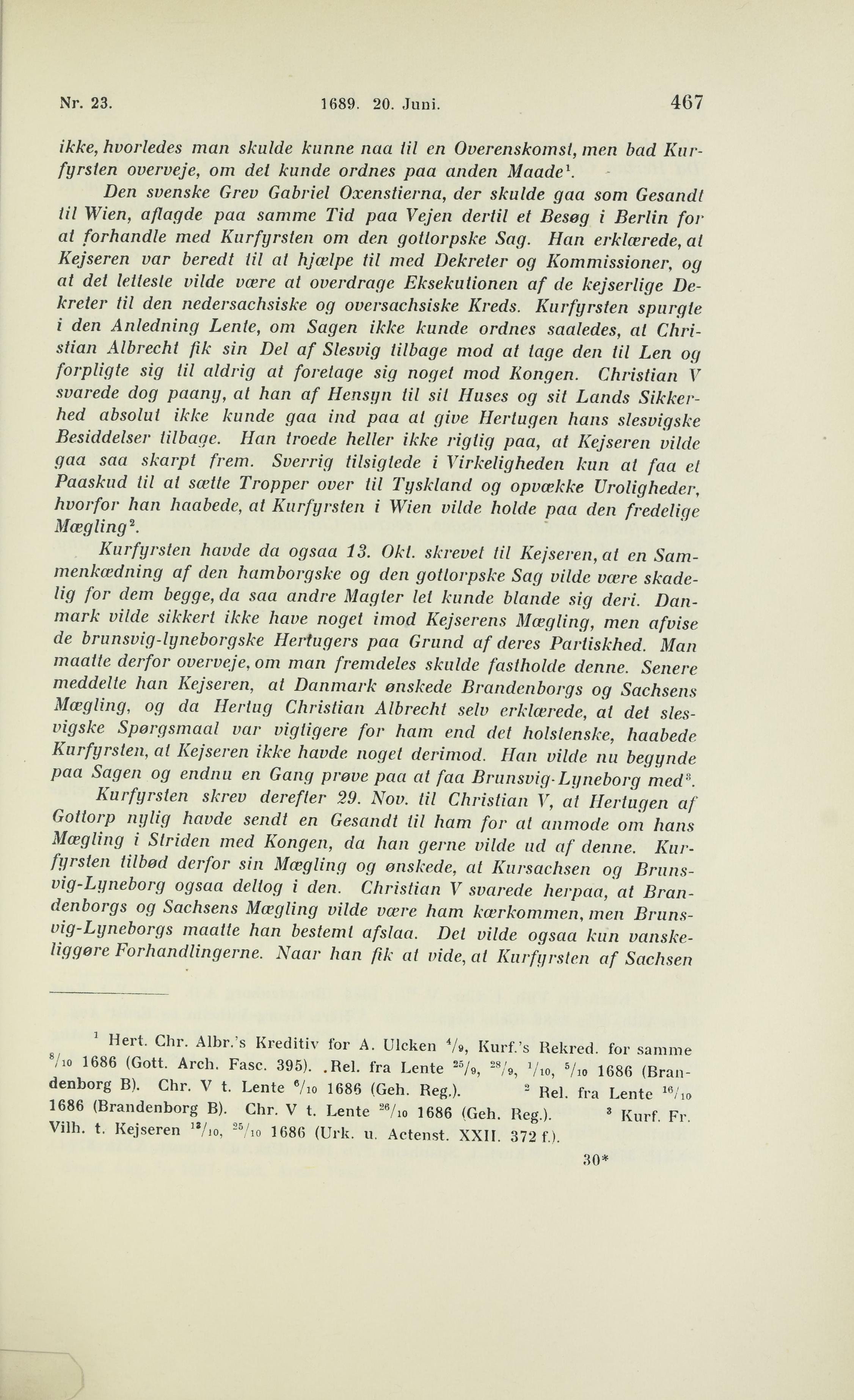 Vilh. t. Kejseren 18/io, 25/io 1686 (Urk. u. Actenst. XXII. 372 f.).