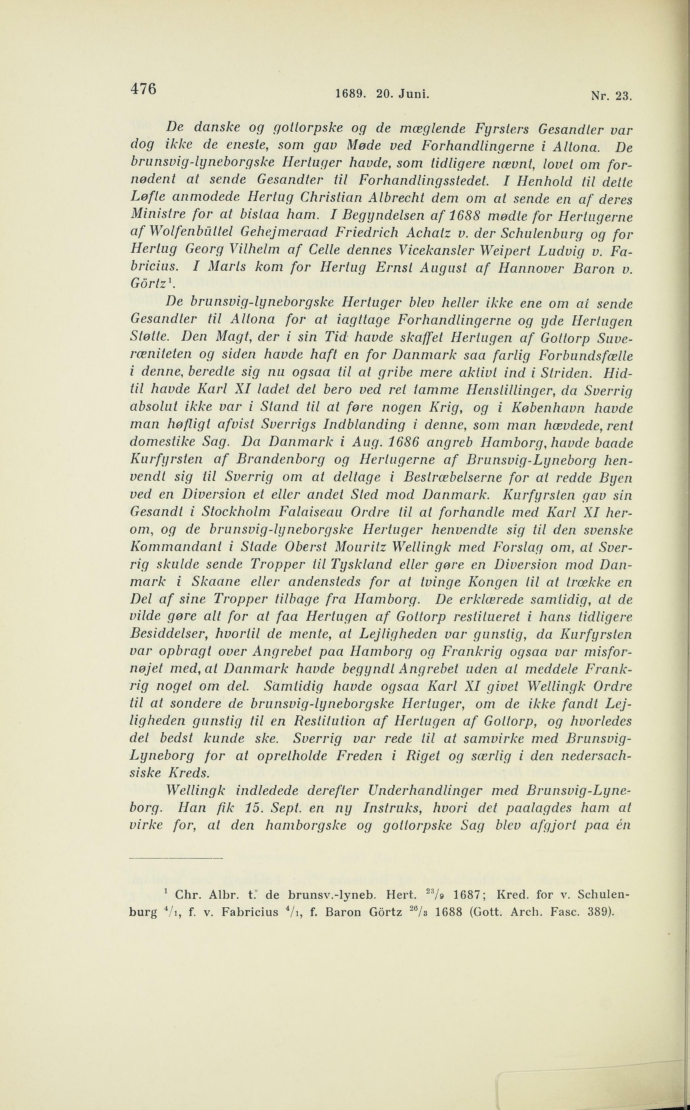 burg 4/i, f. v. Fabricius 4/i, f. Baron Gortz 29/s 1688 (Gott. Arch. Fase. 389).