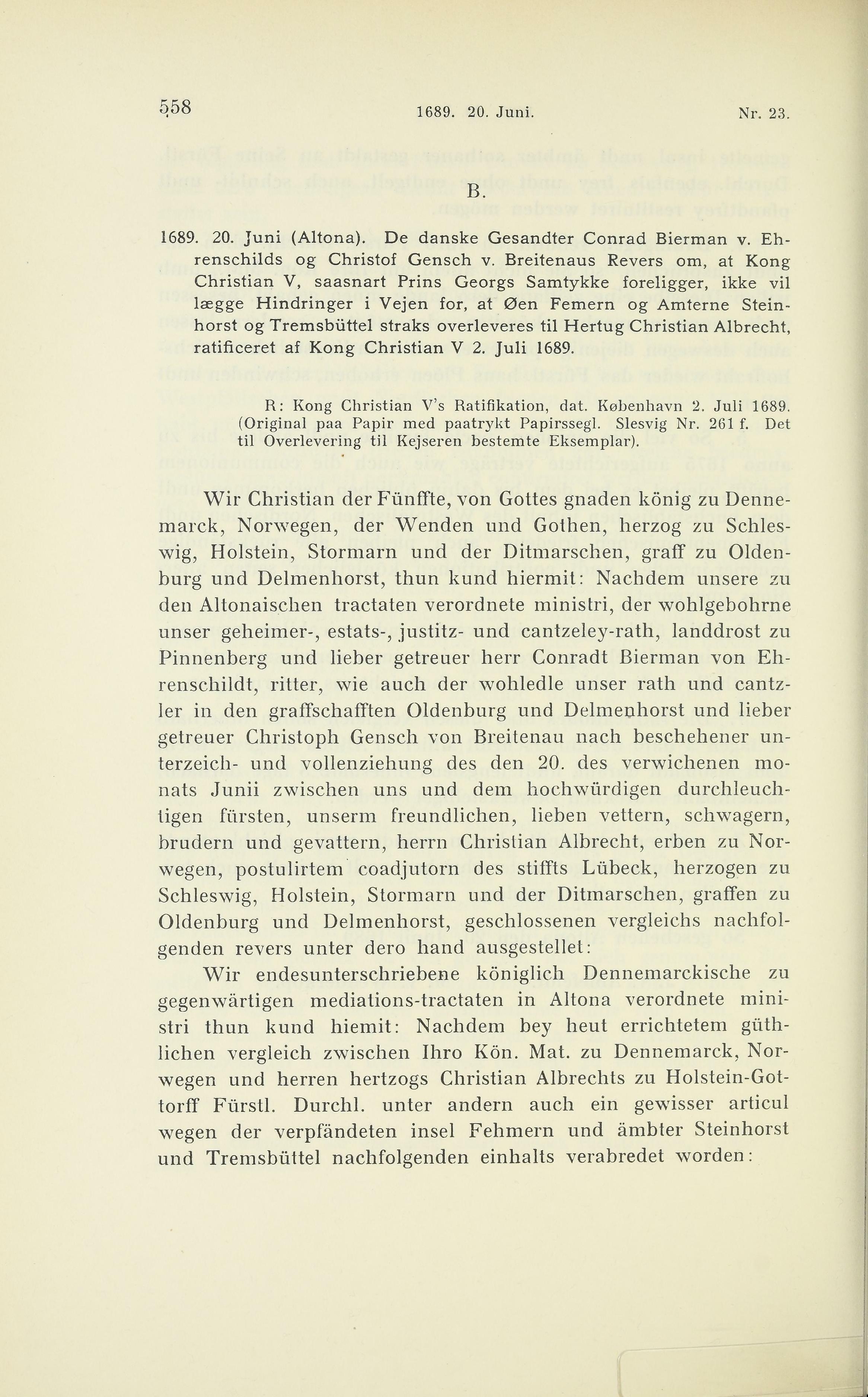 1689. 20. Juni (Altona). De danske Gesandter Conrad Bierman v. Eh