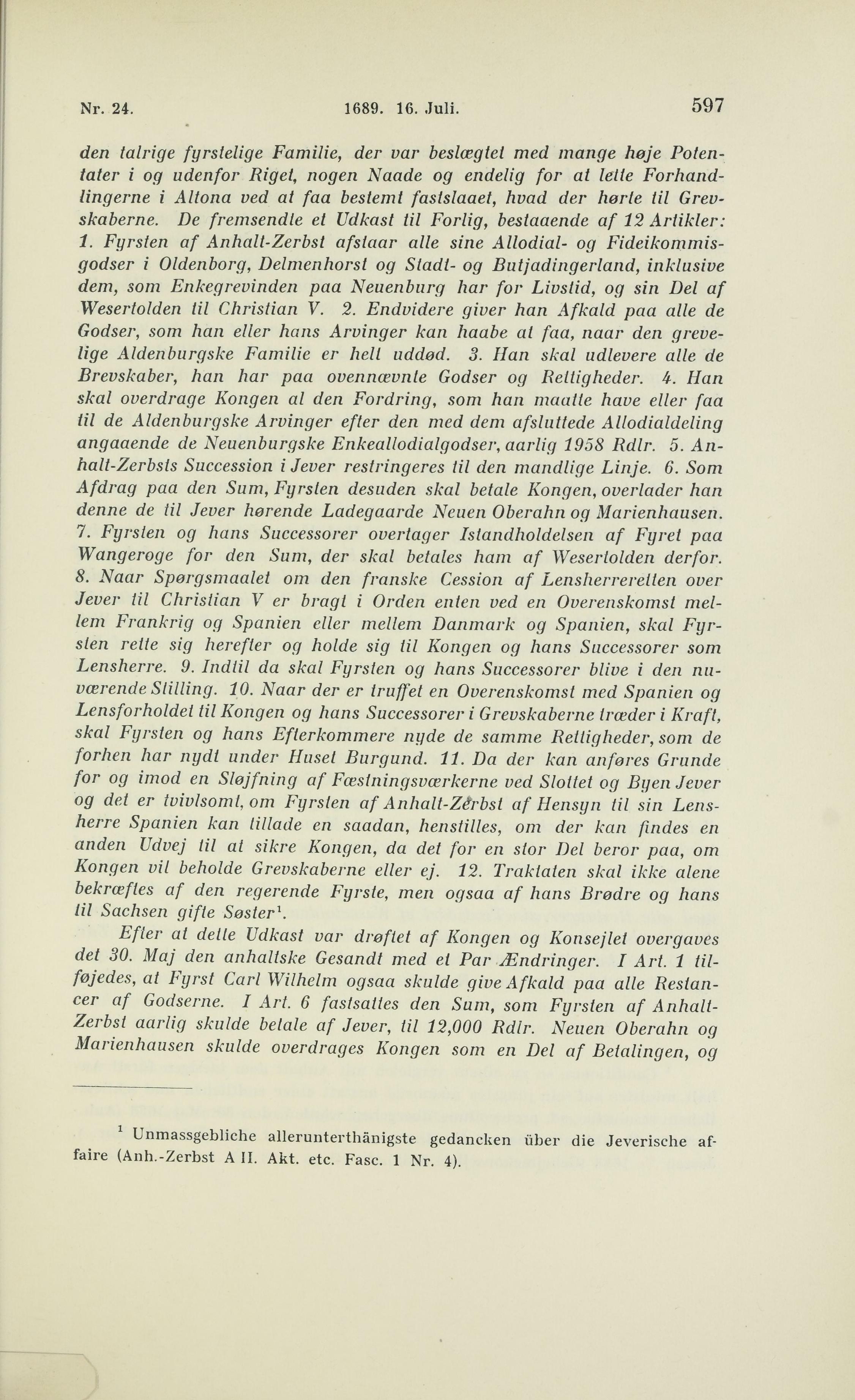 cer af Godserne. I Art. 6 fastsaltes den Sum, som Fyrsten af Anhall-