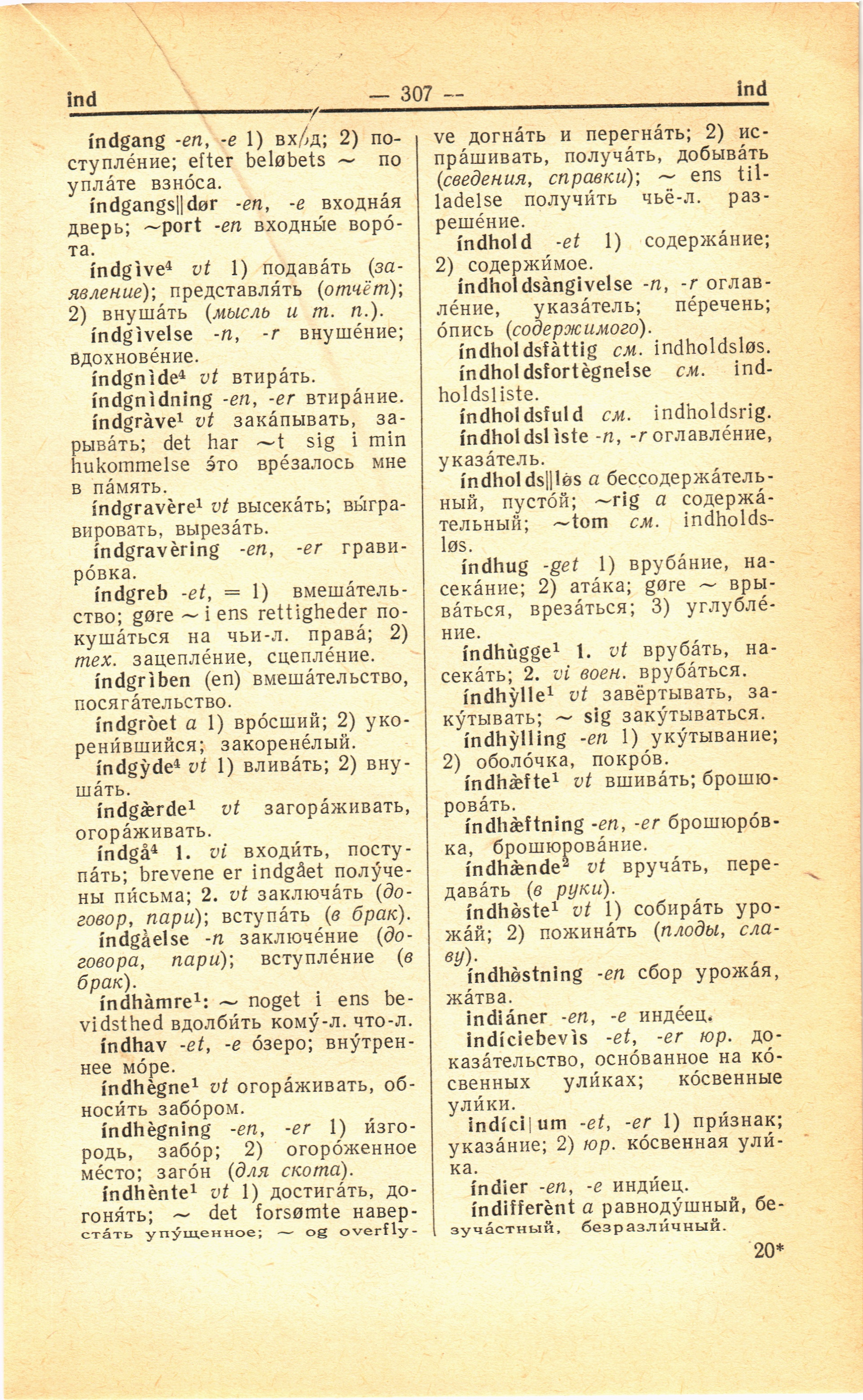 indhug -get 1) врубание,