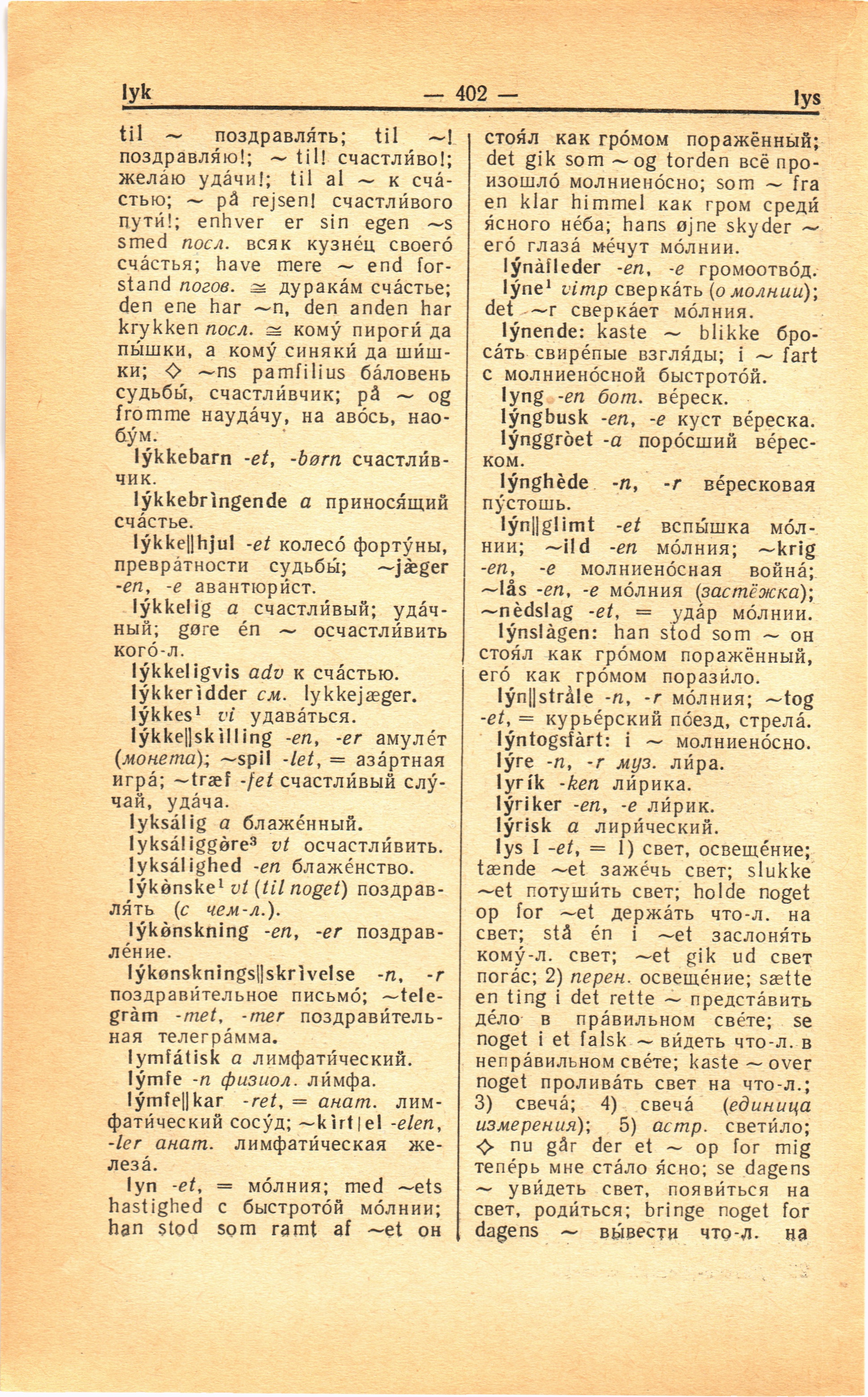 lys I -et, — 1) свет, освещение;
