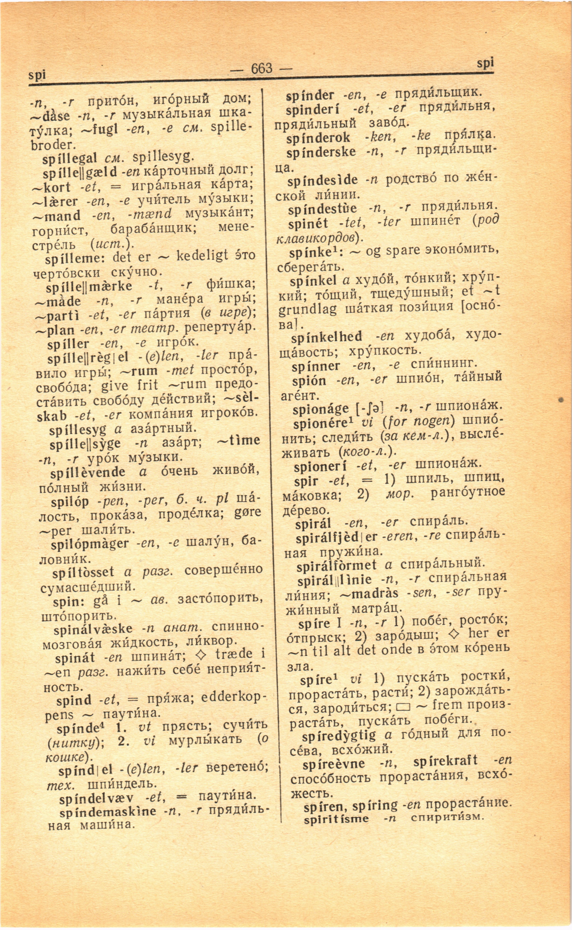 spinderske -л, -г