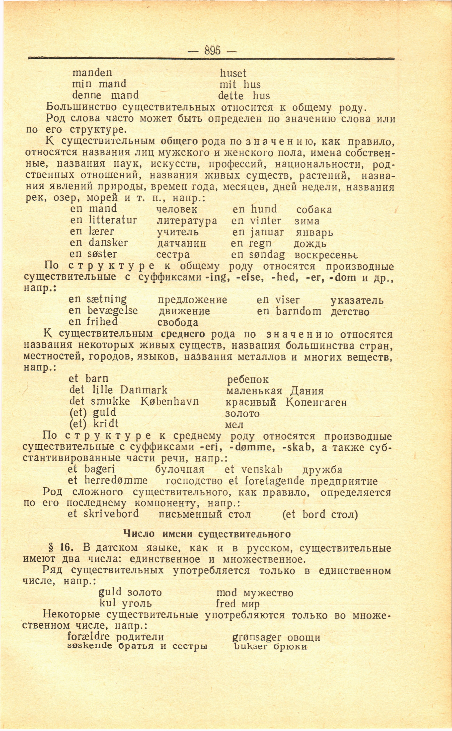 Full resolution (JPEG) - On this page / på denna sida - А. С. Новакович. Краткий очерк фонетики, грамматики и словообразования датского языка - Грамматика - I. Морфология - § 15. Грамматический род имени существительного - § 16. Число имени существительного
