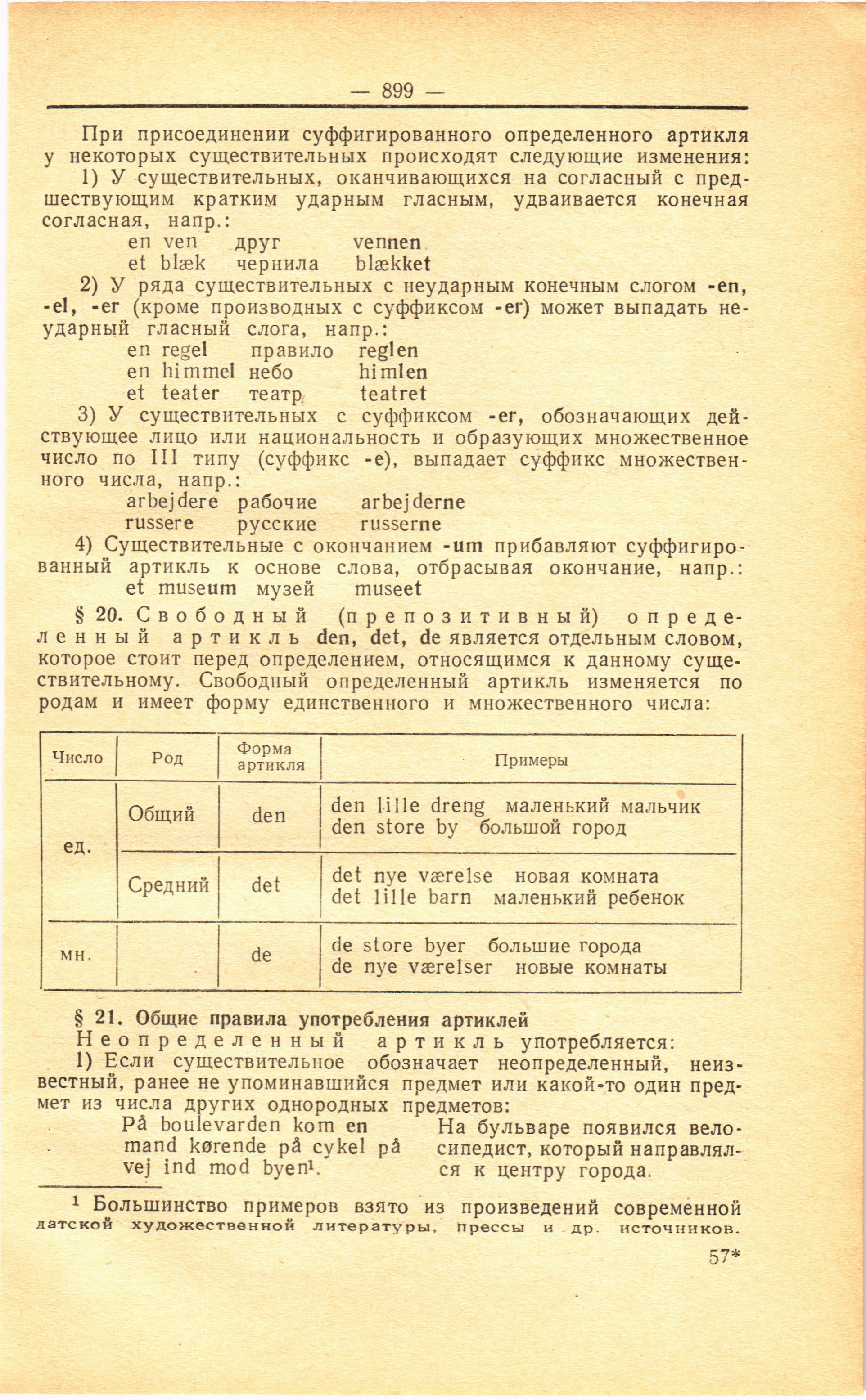 Full resolution (JPEG) - On this page / på denna sida - А. С. Новакович. Краткий очерк фонетики, грамматики и словообразования датского языка - Грамматика - I. Морфология - § 19. Суффигированный (постпозитивный) определенный артикль - § 20. Свободный (препозитивный) определенный артикль - § 21. Общие правила употребления артиклей