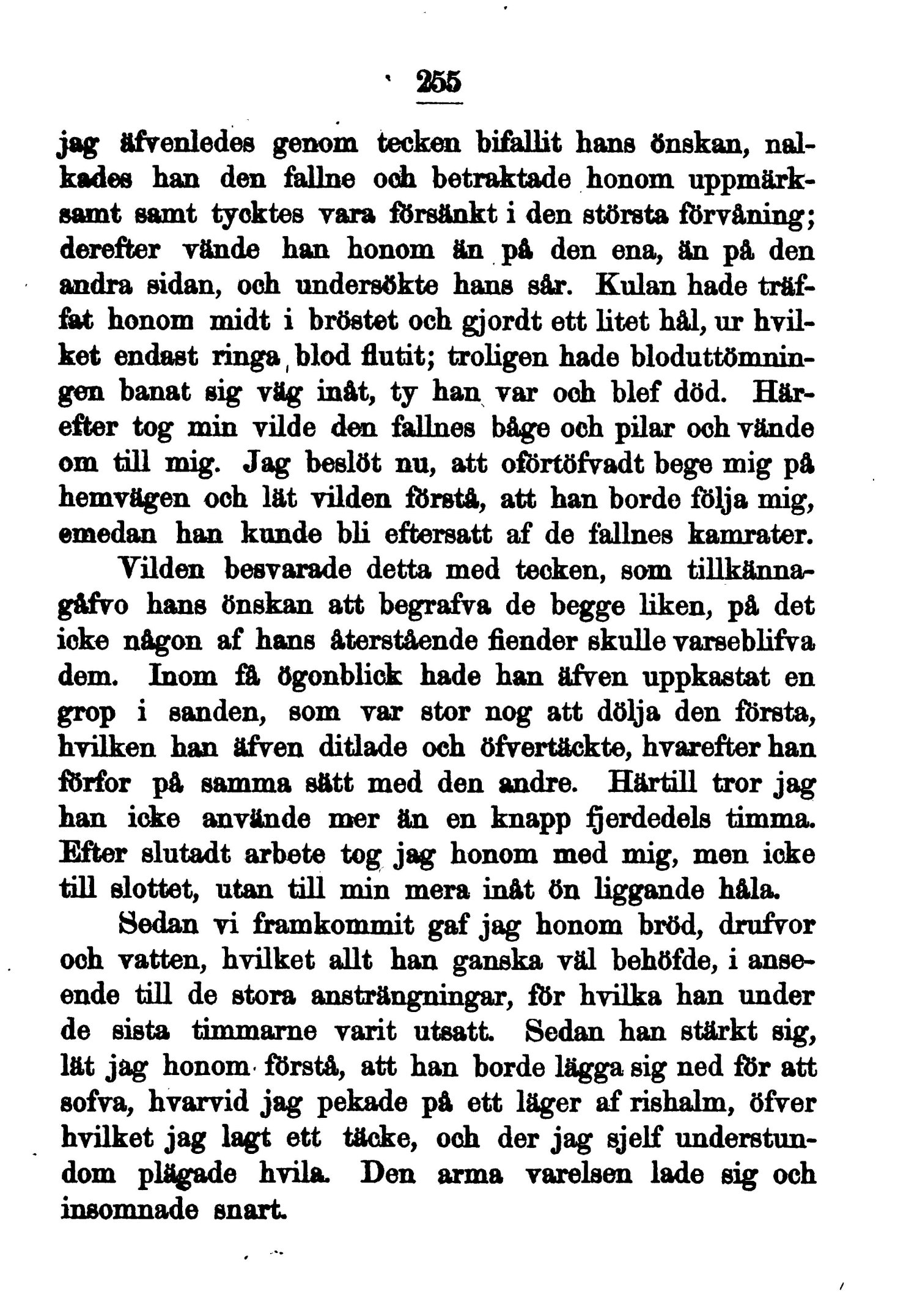 hemvägen och lät vilden förstå, att han borde följa mig,