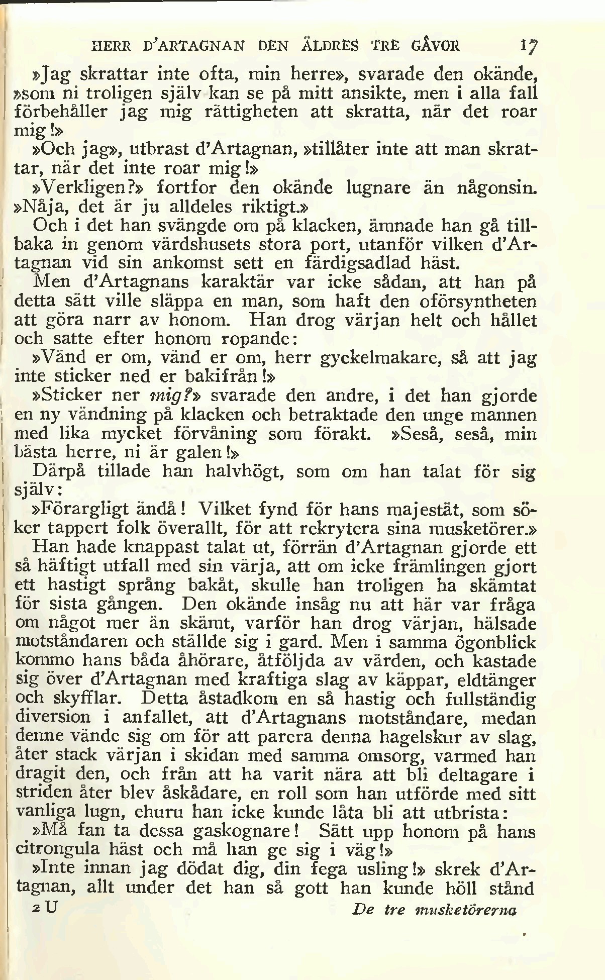 »Och jag», utbrast d"Artagnan, »tillåter inte att man skrat-