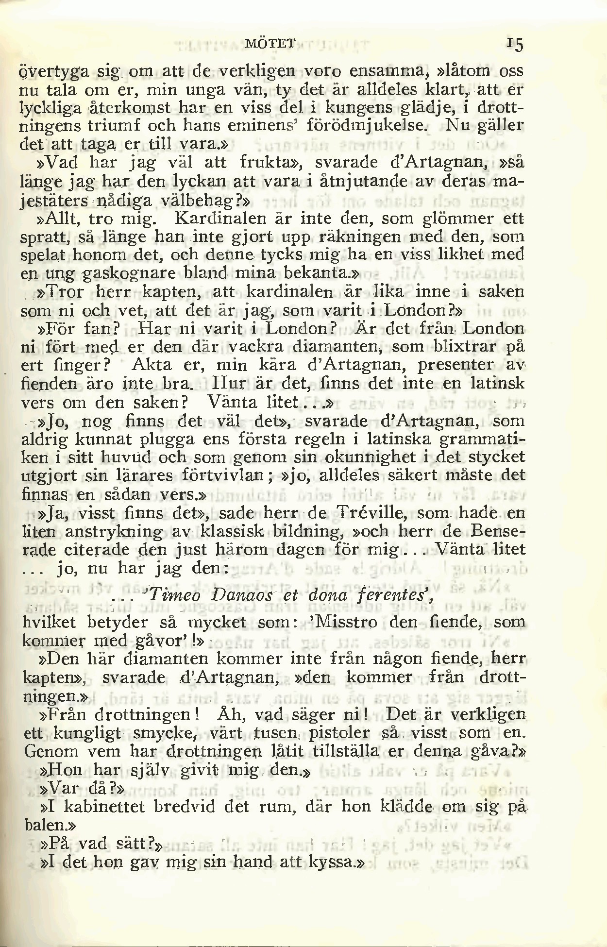 »Vad har jag väl att frukta», svarade d’Artagnan, »så