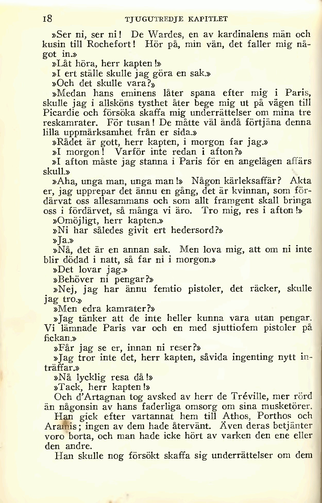 Och d’Artagnan tog avsked av herr de Tréville, mer rörd
