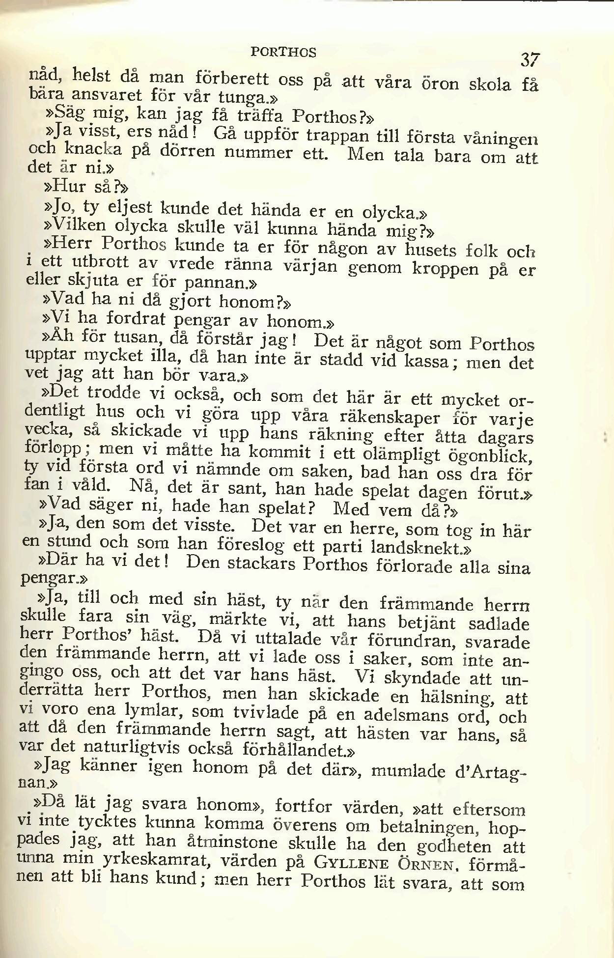 »Där ha vi det! Den stackars Porthos förlorade alla sina