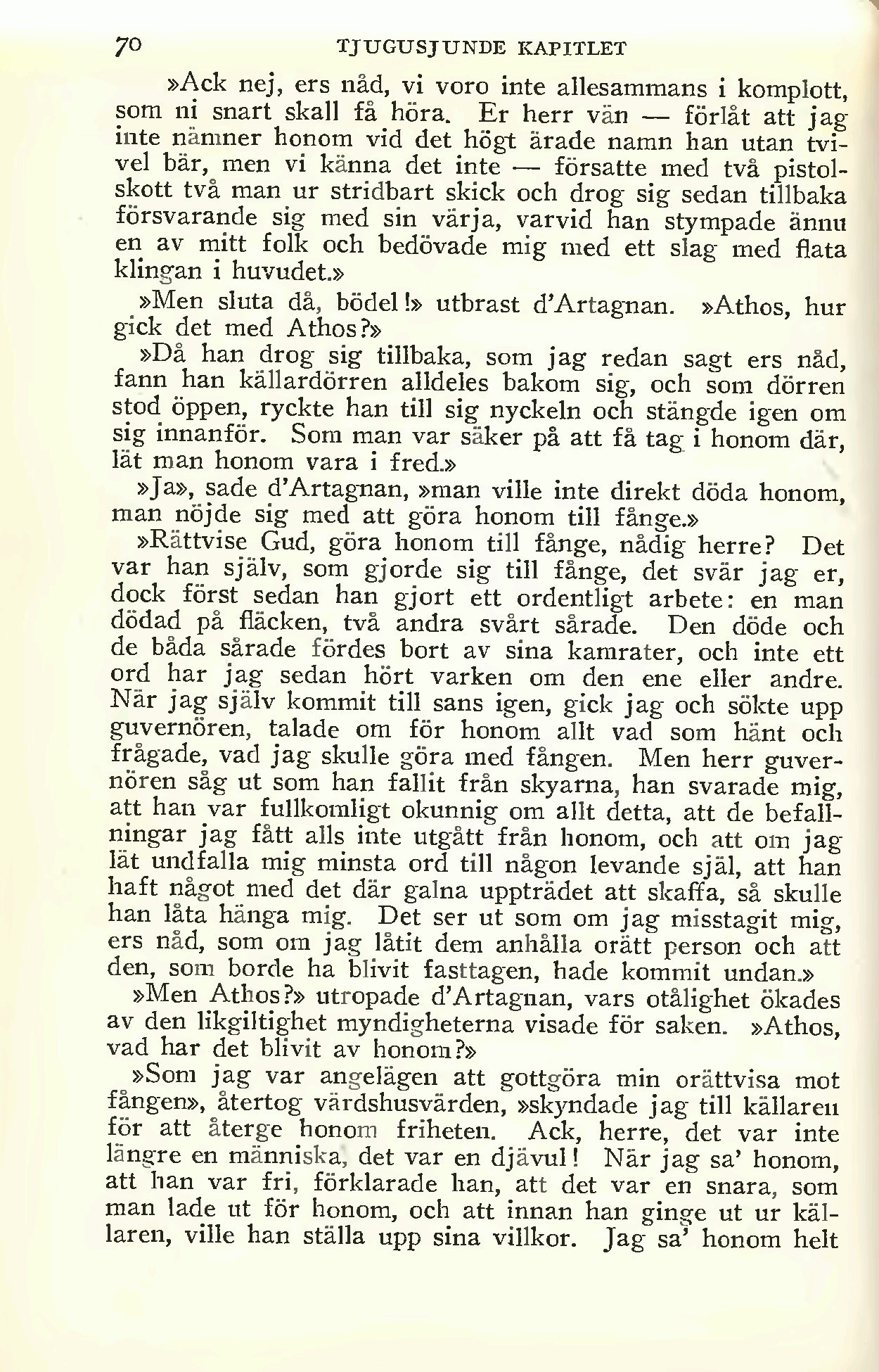 »Men Athos?» utropade d’Artagnan, vars otålighet ökades