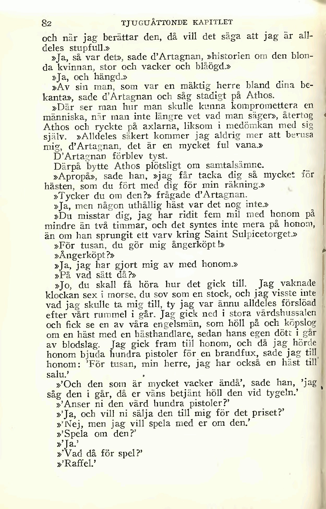 »Ja, så var det», sade d’Artagnan, »historien om den blon-