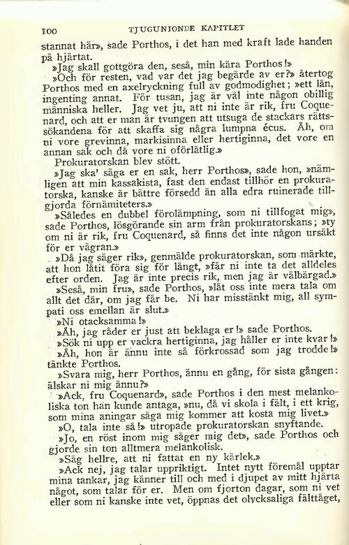 »Seså, min fru», sade Porthos, »låt oss inte mera tala om