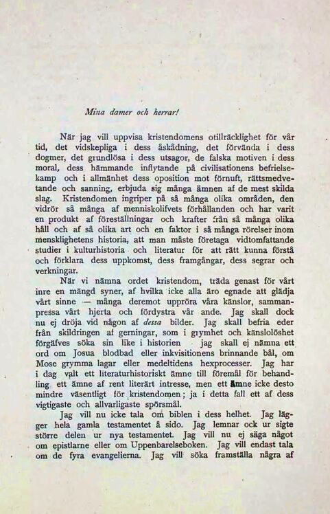 Jag vill nu icke tala om biblen i dess helhet. Jag
