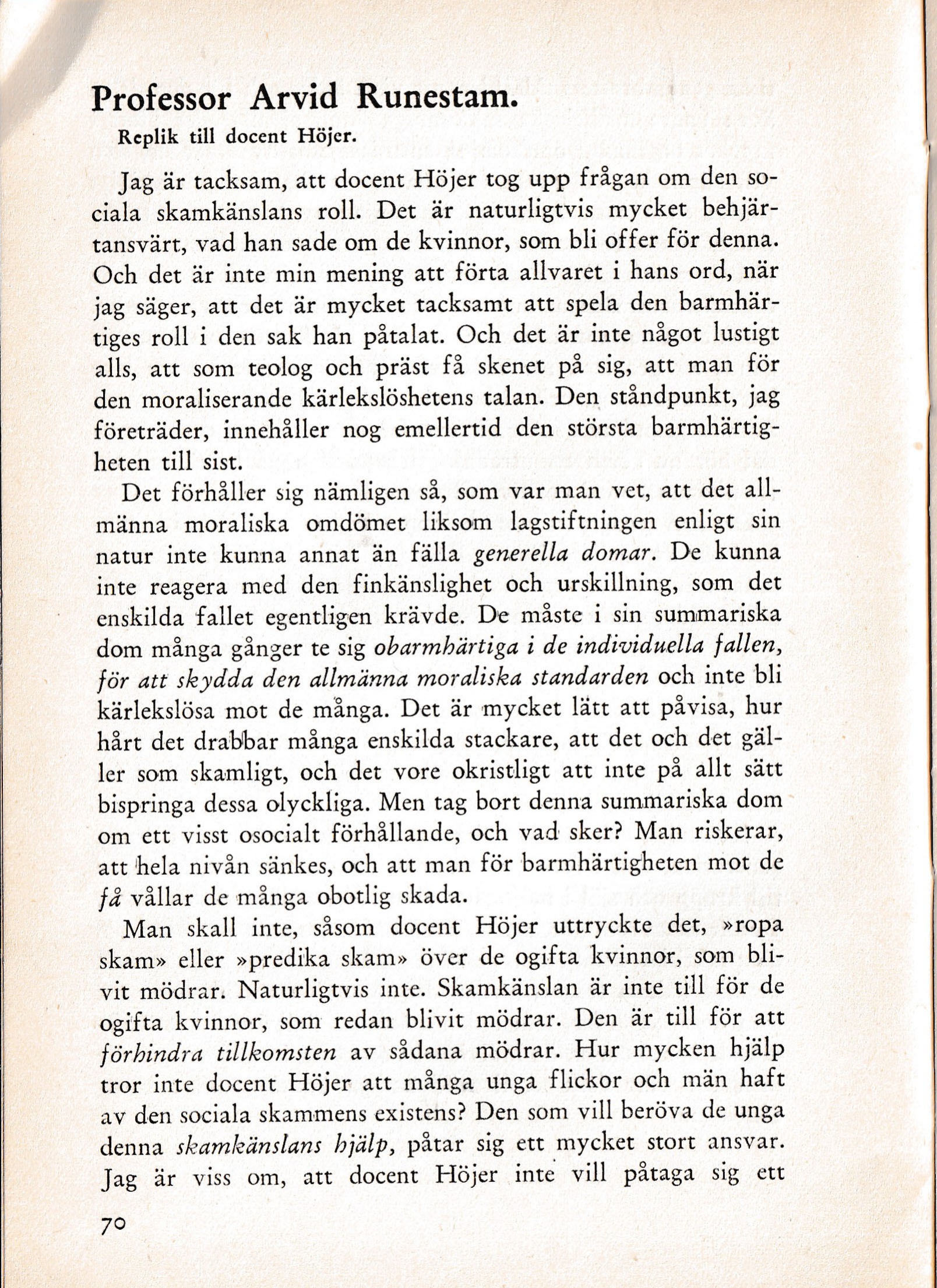 Man skall inte, såsom docent Höjer uttryckte det, »ropa