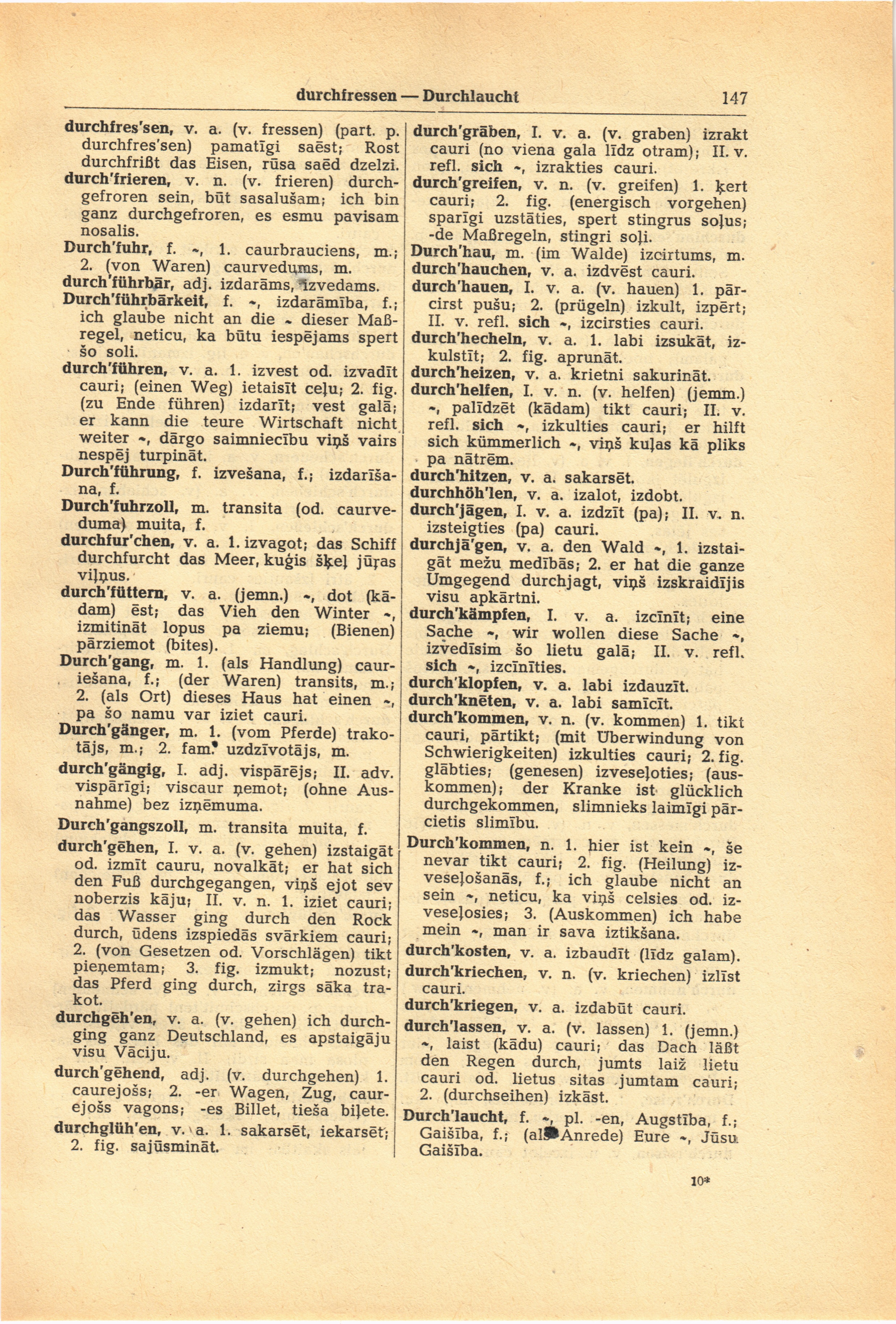 Durchfuhr, f. 1. caurbrauciens, m.;