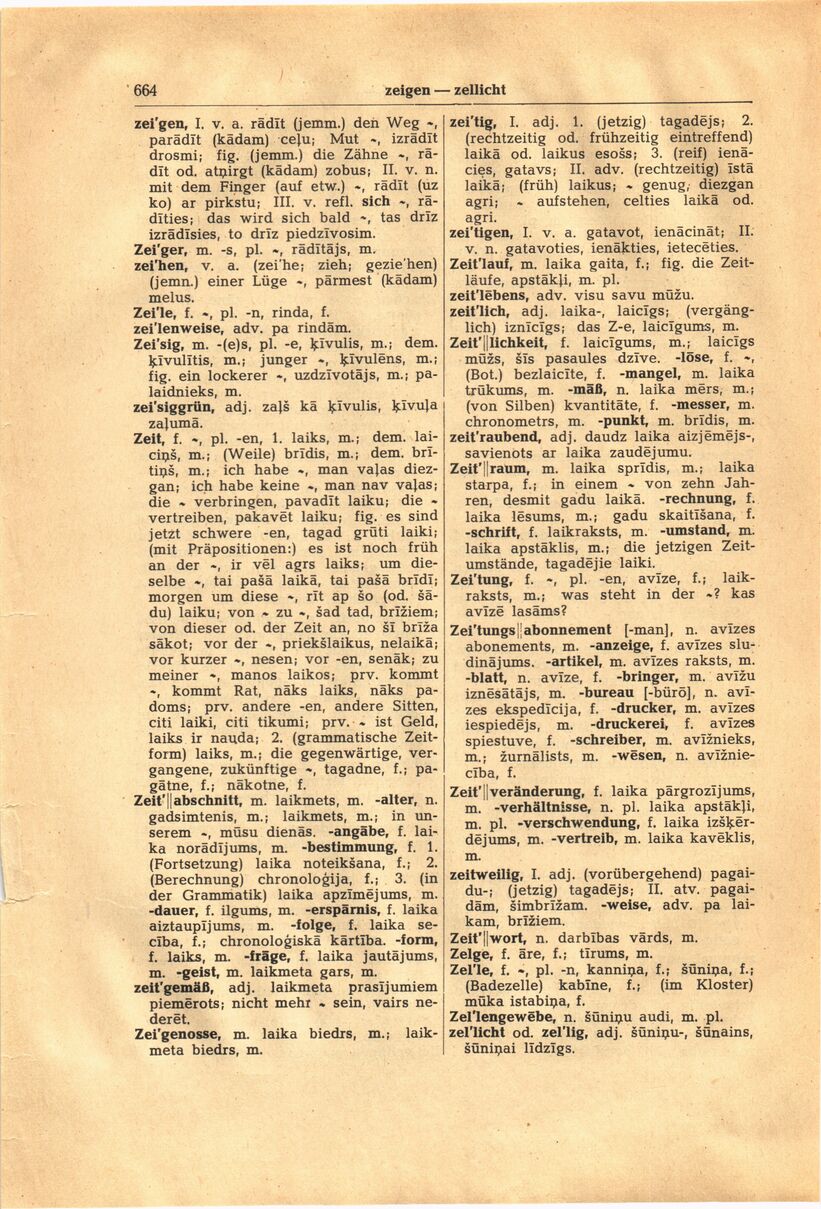 Zeit, f. pl. -en, 1. laiks, m.; dem.