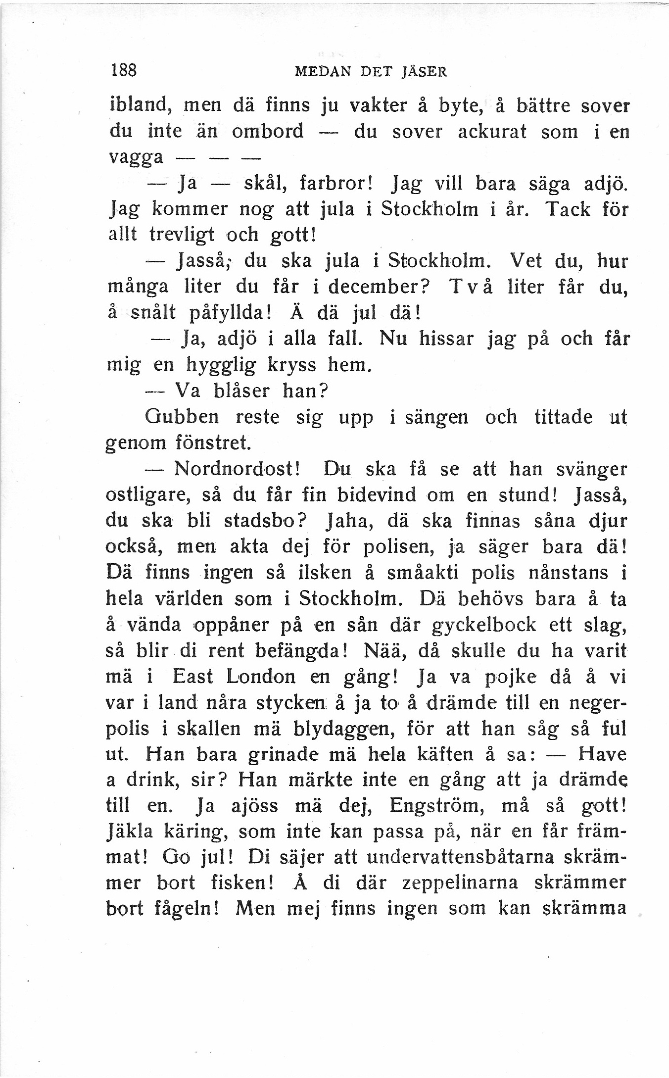 — Jasså; du ska jula i Stockholm. Vet du, hur