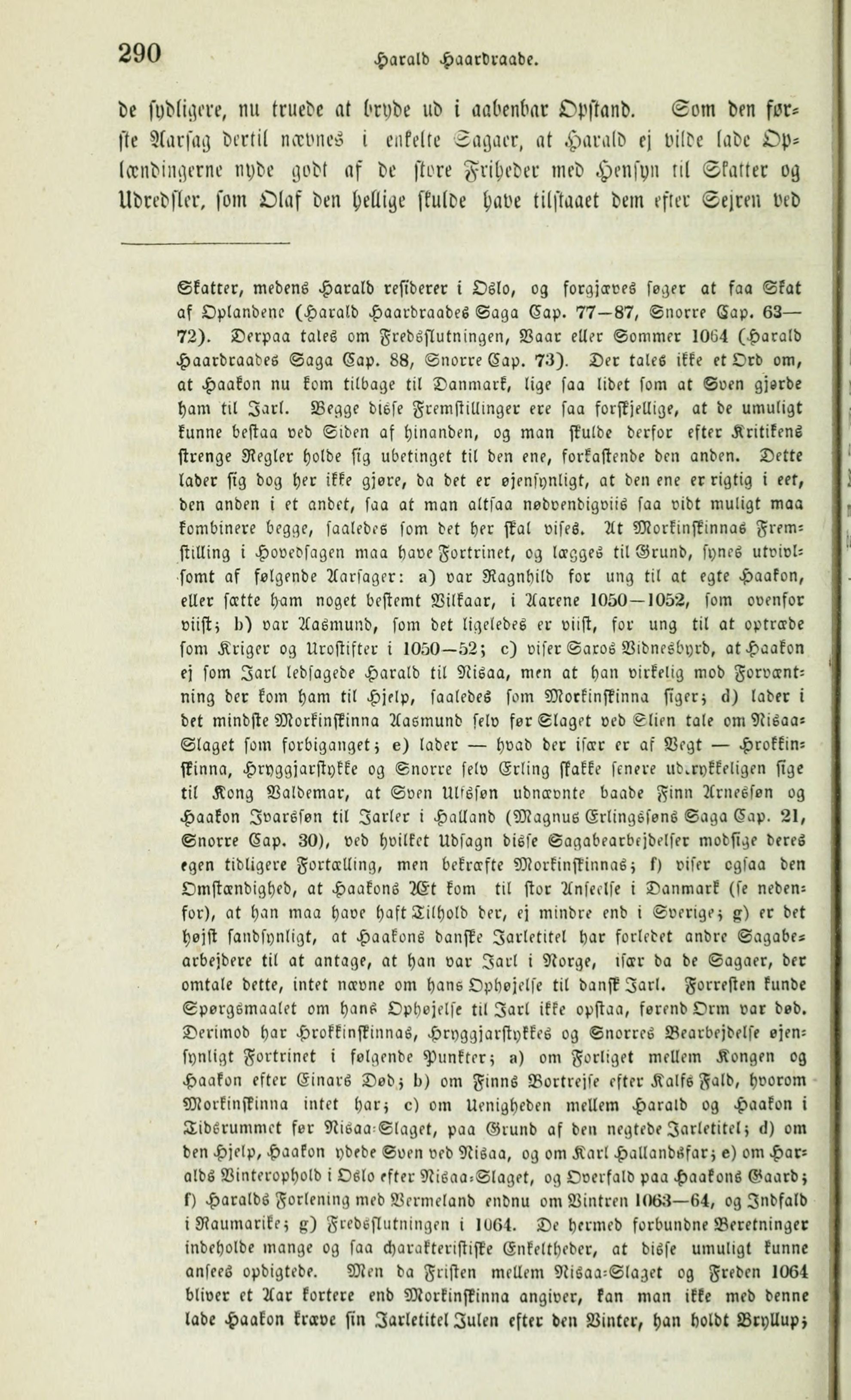 som Kriger og Urostifter i 1050—52; c) viser Saros Vidnesbyrd, at Haakon