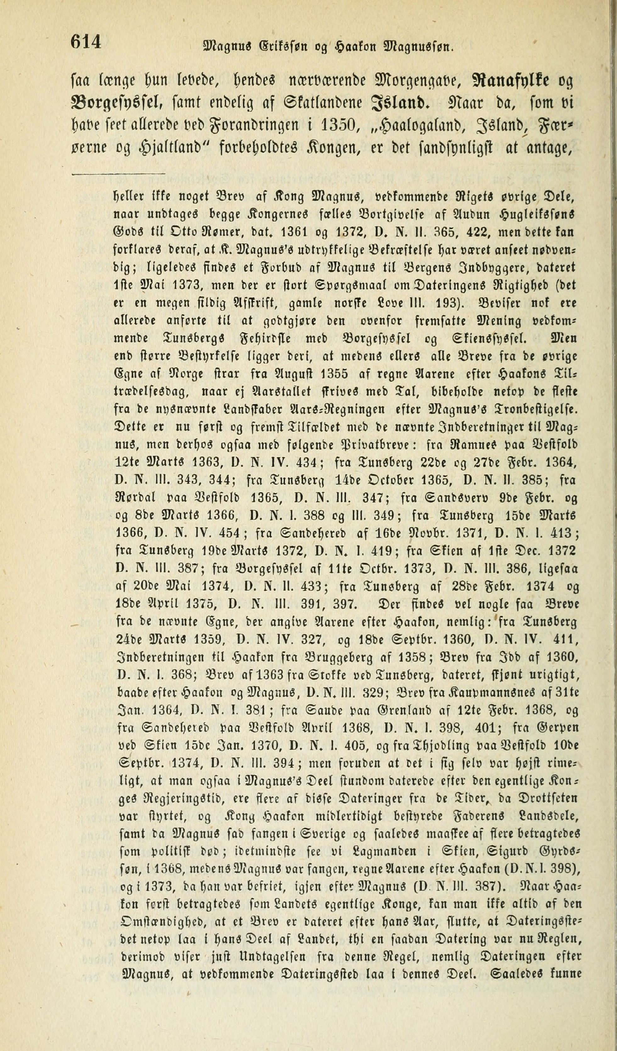 og i 1373,. da han var befriet, igjen efter Magnus sv IV. 111. 387). Naar Han