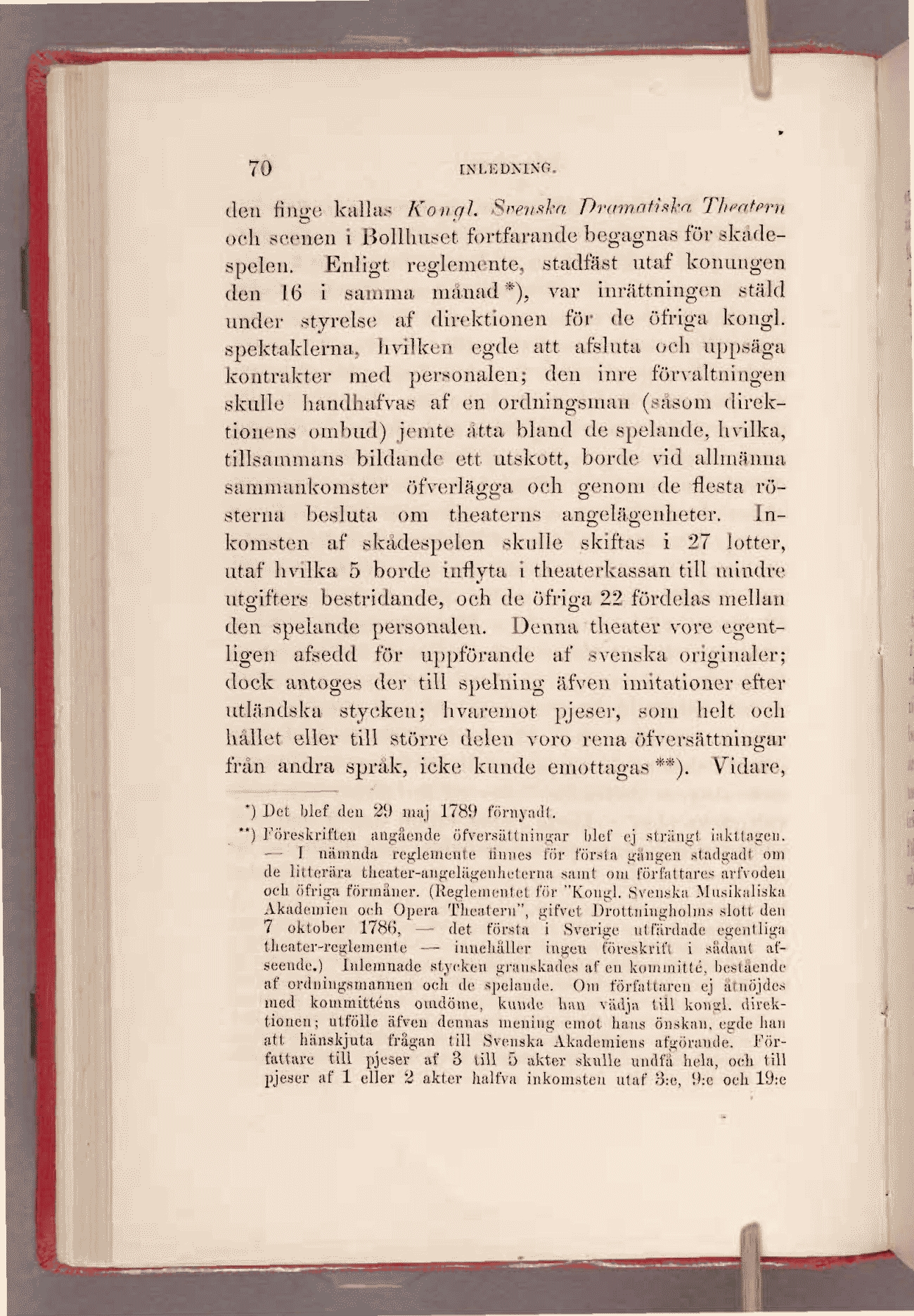 skådespelen. Enligt reglemente, stadfäst utaf konungen