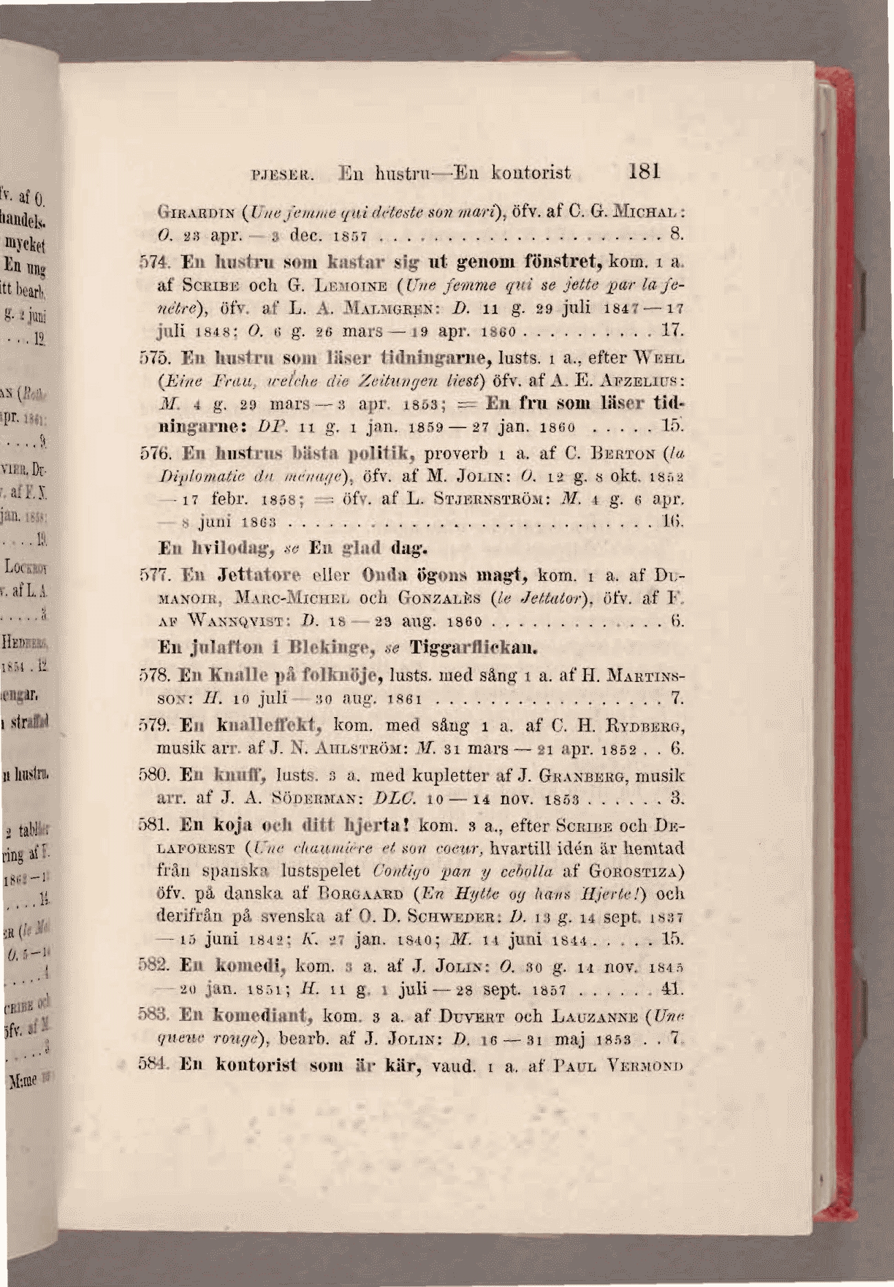 582. En komedi, kom. 3 a. af J. Jolin: 0. so g. 14 nov* 184*