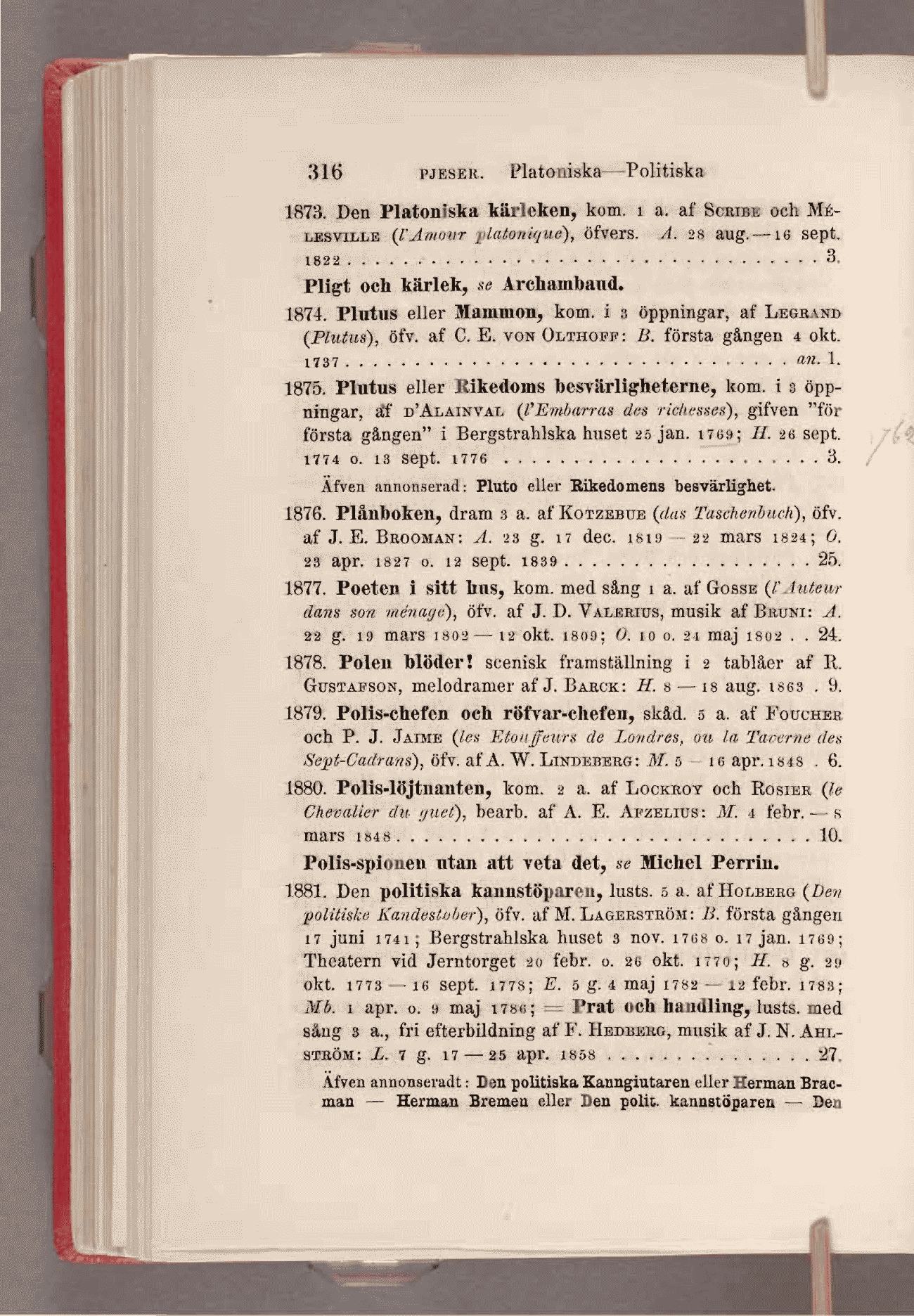 1876. Plånboken, dram s a. af Kotzebue (das Taschevbuch), öfv.