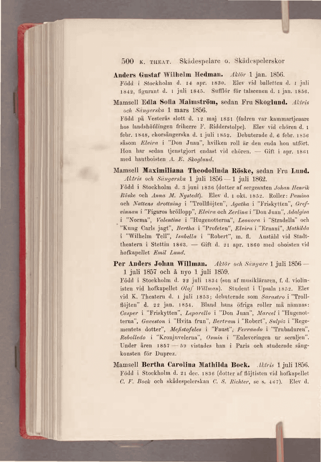 Röske och Anna M. Nystedt). Elev d. i okt. 1852. Roller: Pamina