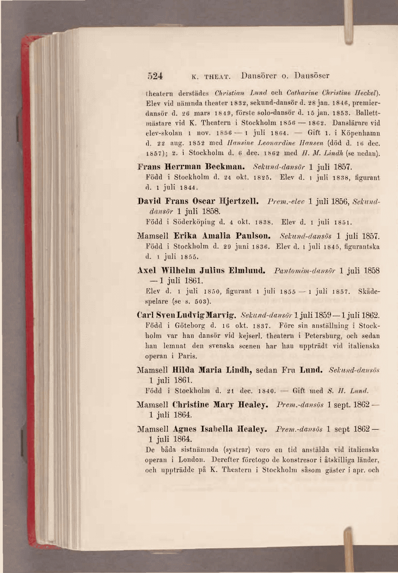 Mamsell Christine Mary Healey. Prem.-dansös 1 sept. 1862 —