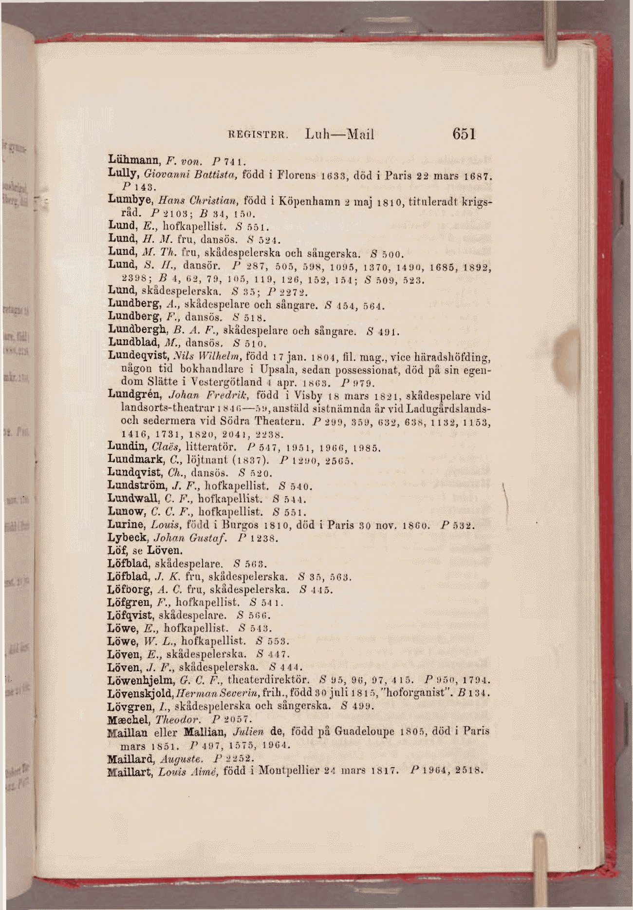 Lundberg, A., skådespelare och sångare. S 454, 564.