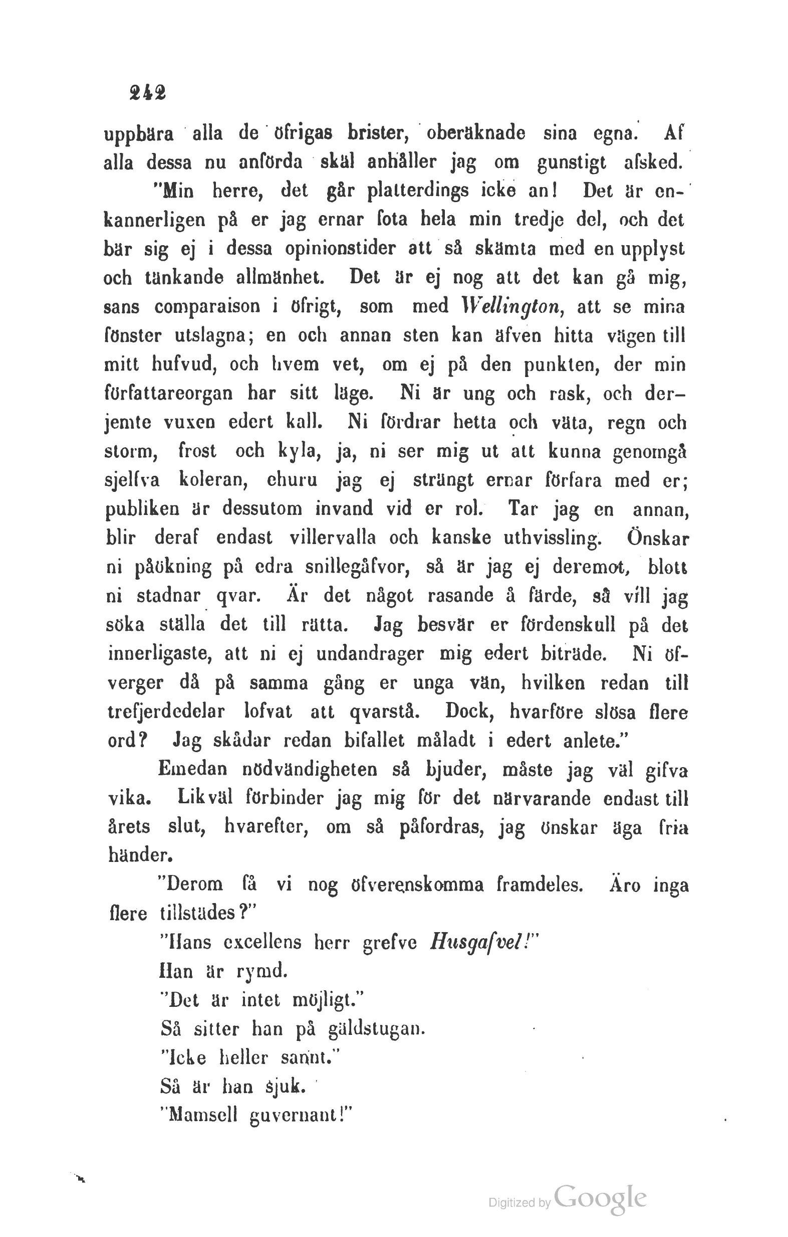 sans comparaison i öfrigt, som med Wellington, att se mina